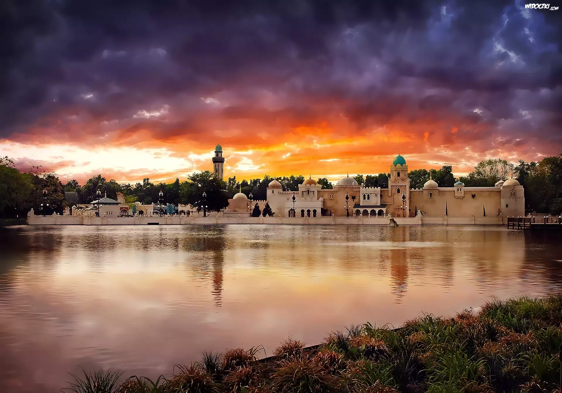 Zdjęcia, Budowla, Jeziorko, Niebo, Chmury