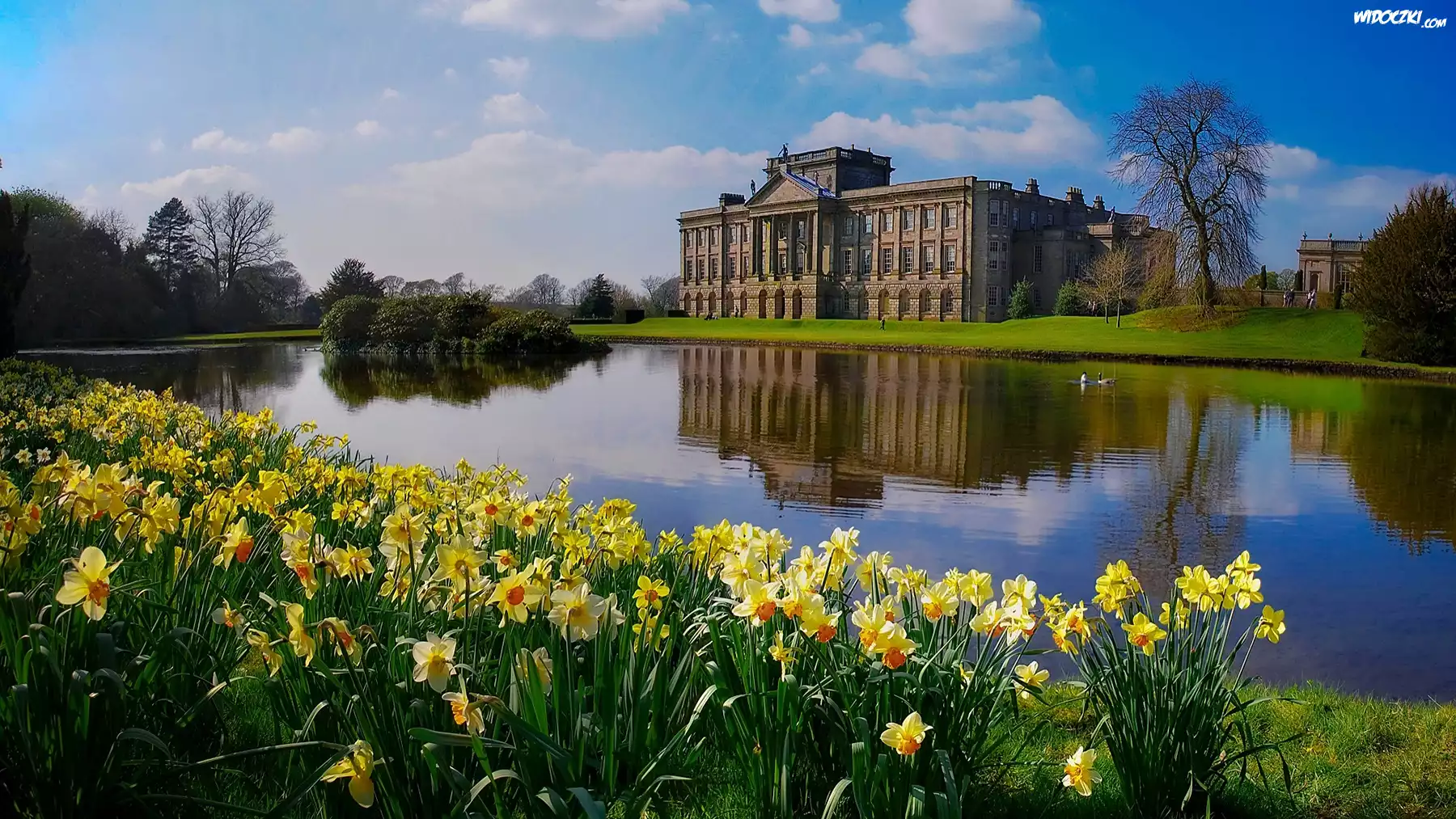 Zdjęcia, Budowla, Pałacyk, Jeziorko, Staw, Żonkile