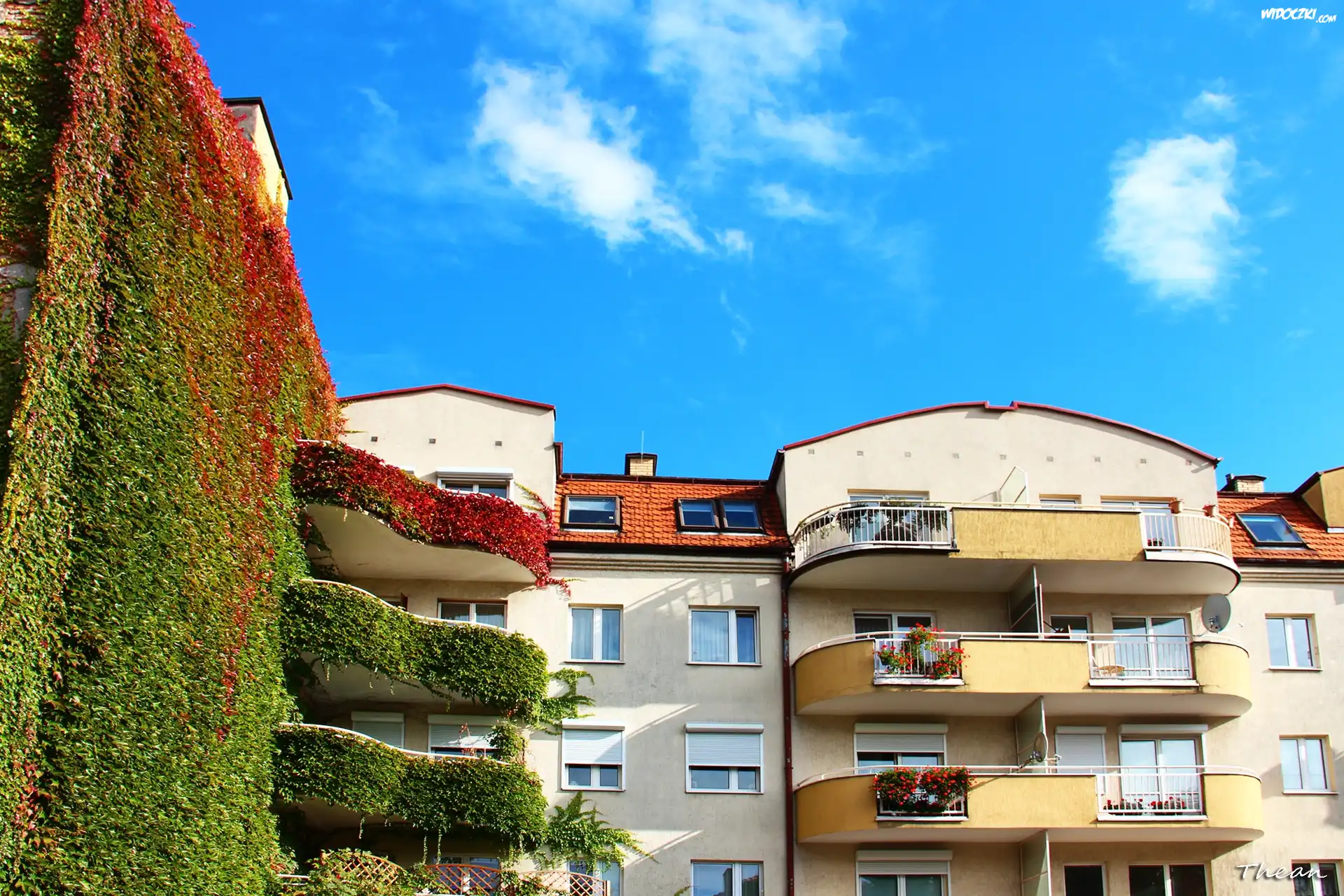 Zdjęcia, Budynki, Porośnięte, Dzikim, Winem
