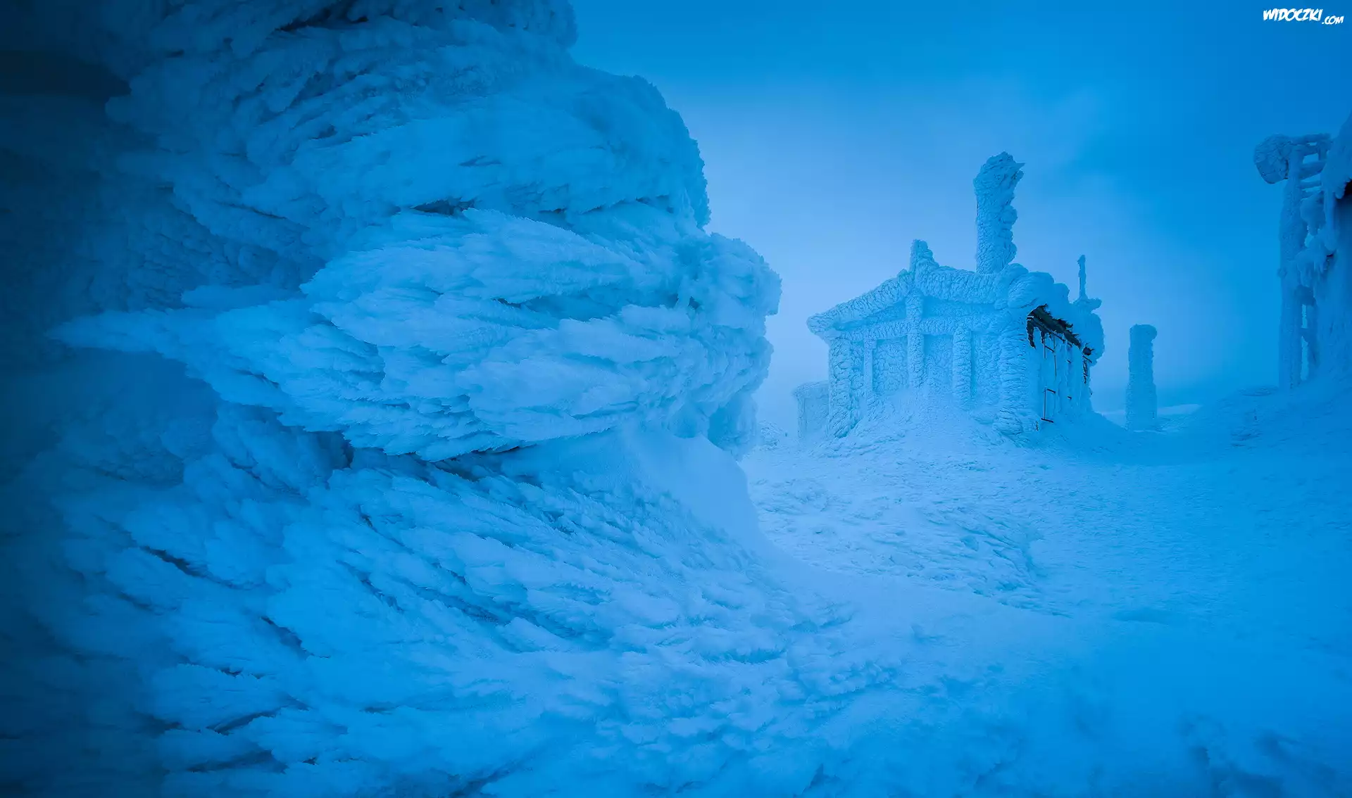 Zdjęcia, Zima, Śnieg, Ośnieżone, Drzewa, Zaśnieżony, Dom, Szczyt, Czarny Wierch, Bułgaria
