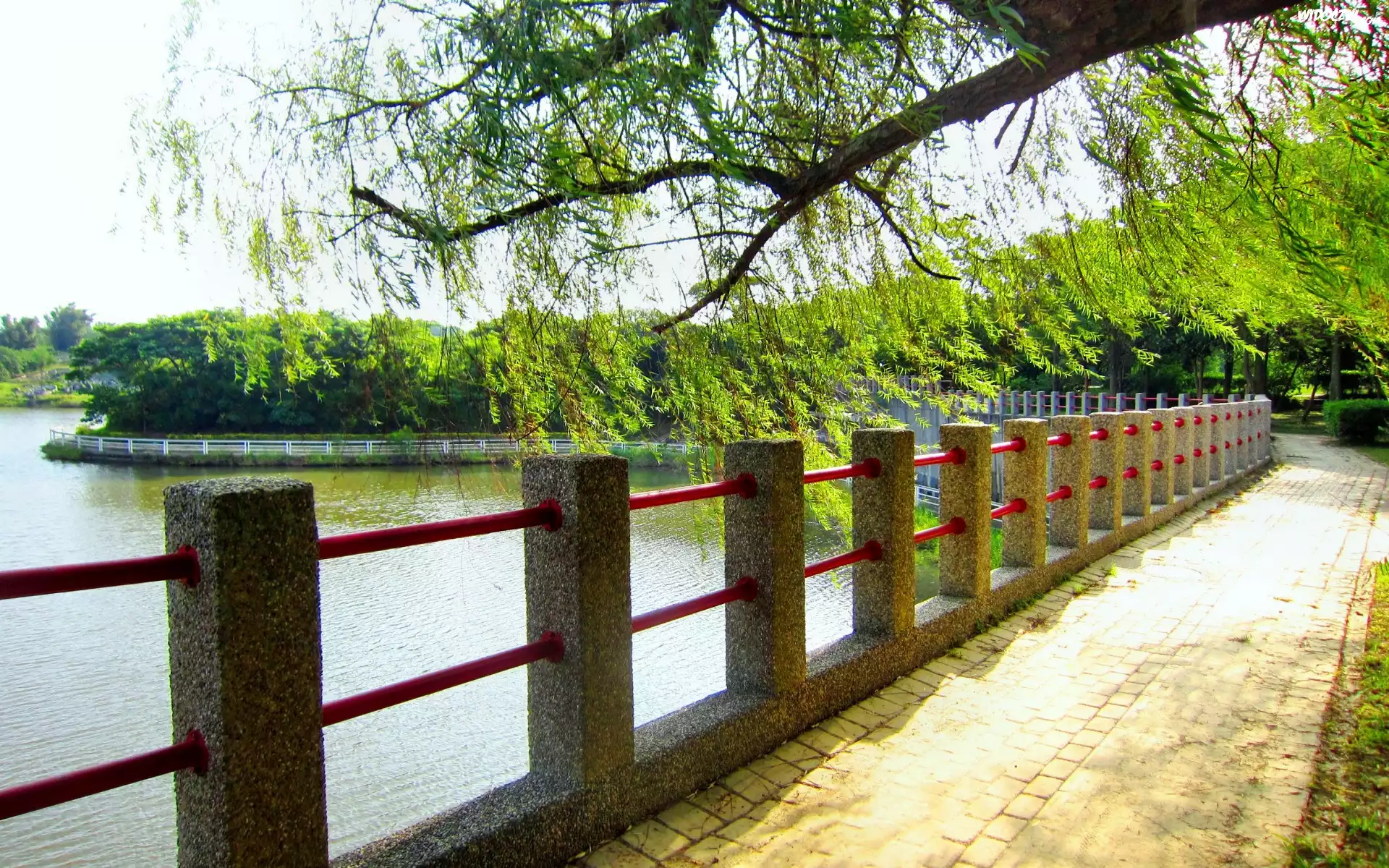 Zdjęcia, Jezioro, Bulwar, Drzewa
