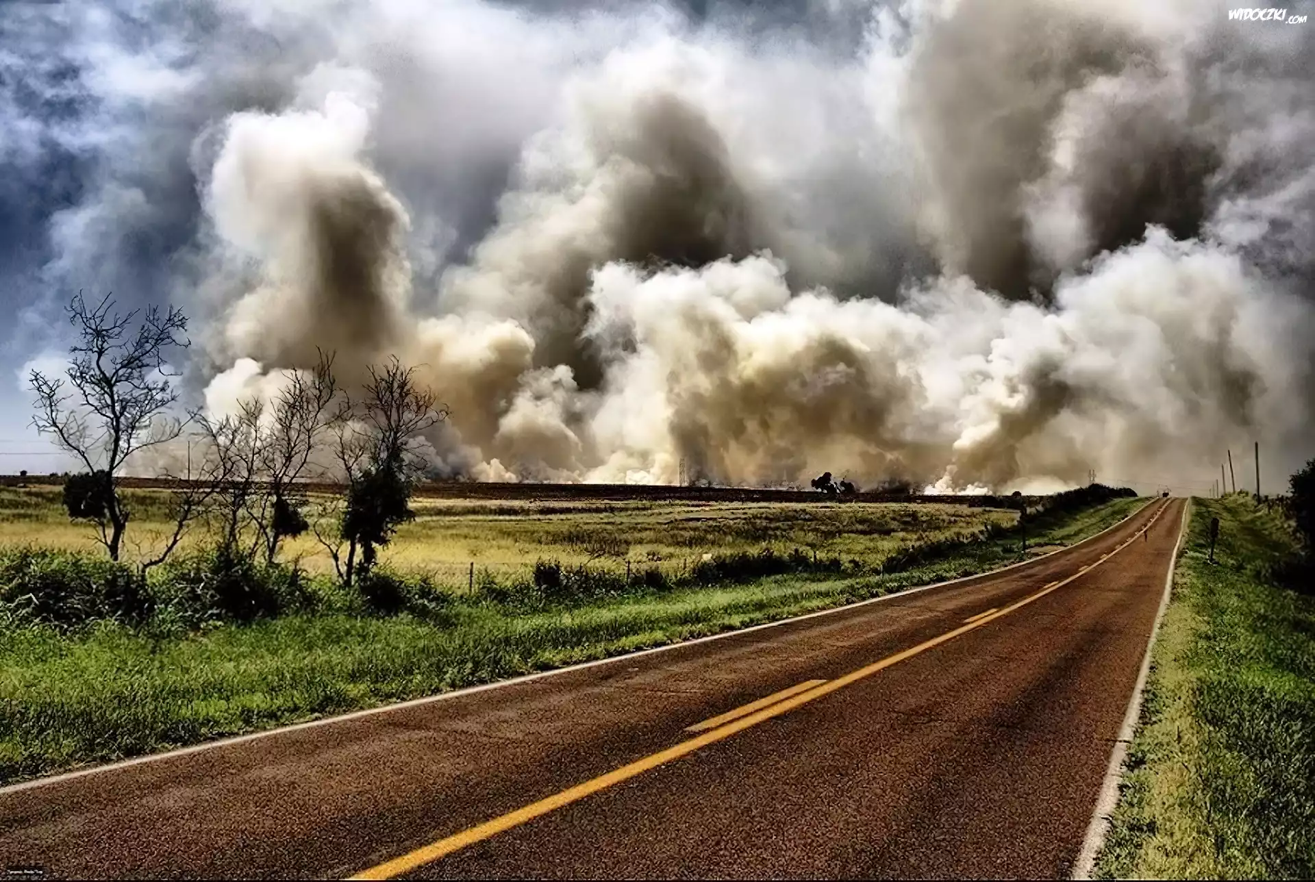 Zdjęcia, Łąki, Szosa, Burzowe, Chmury
