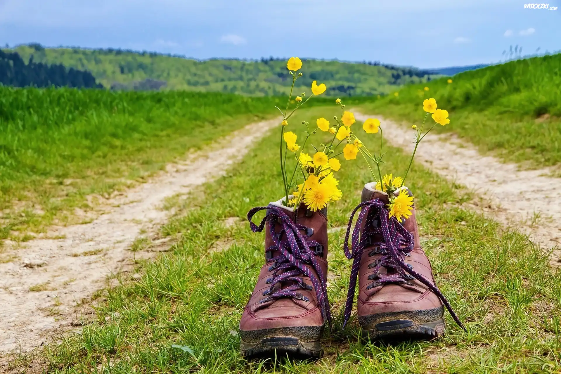 Zdjęcia, Buty, Kwiatki, Polna, Droga
