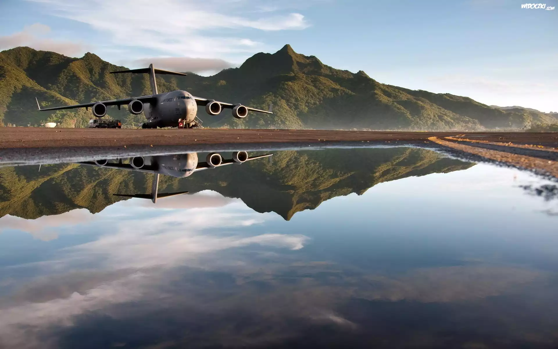 Zdjęcia, Boeing, C-17, Globemaster III, Góry, Woda, Odbicie