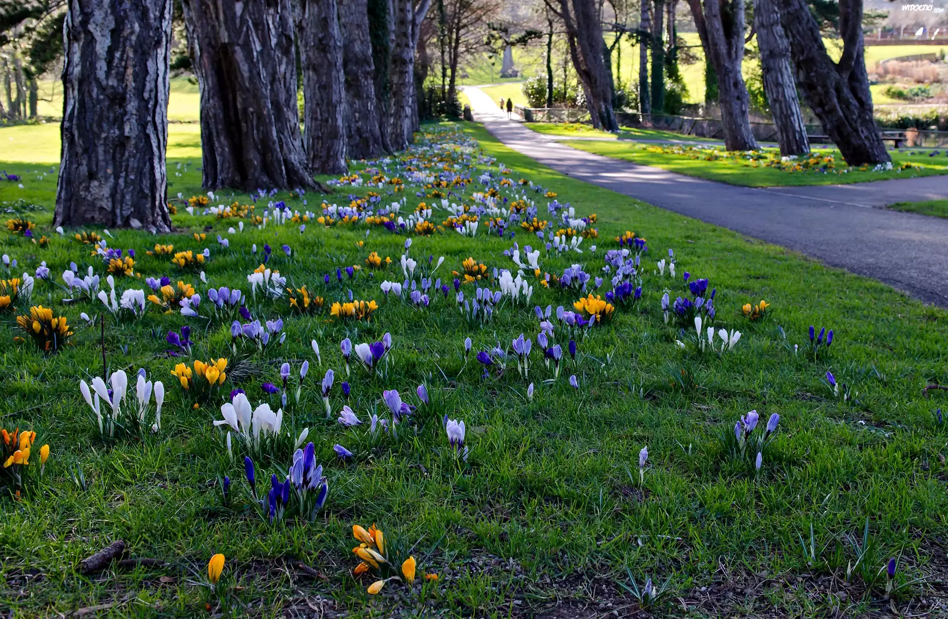 Zdjęcia, Irlandia, Cabinteely Park, Dublin, Park, Krokusy, Wiosna