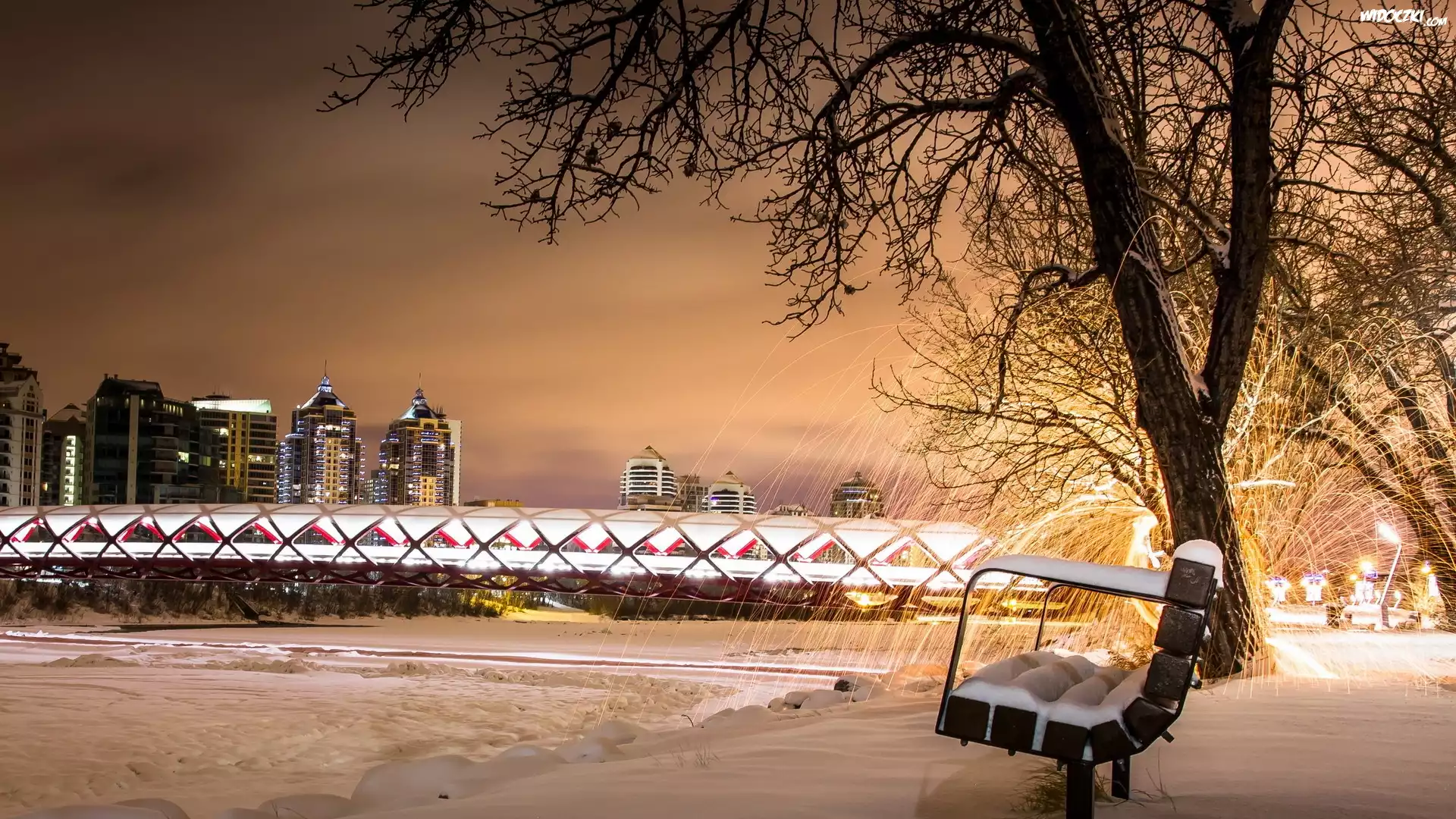 Zdjęcia, Calgary, Most, Zima, Drzewo, Ławka
