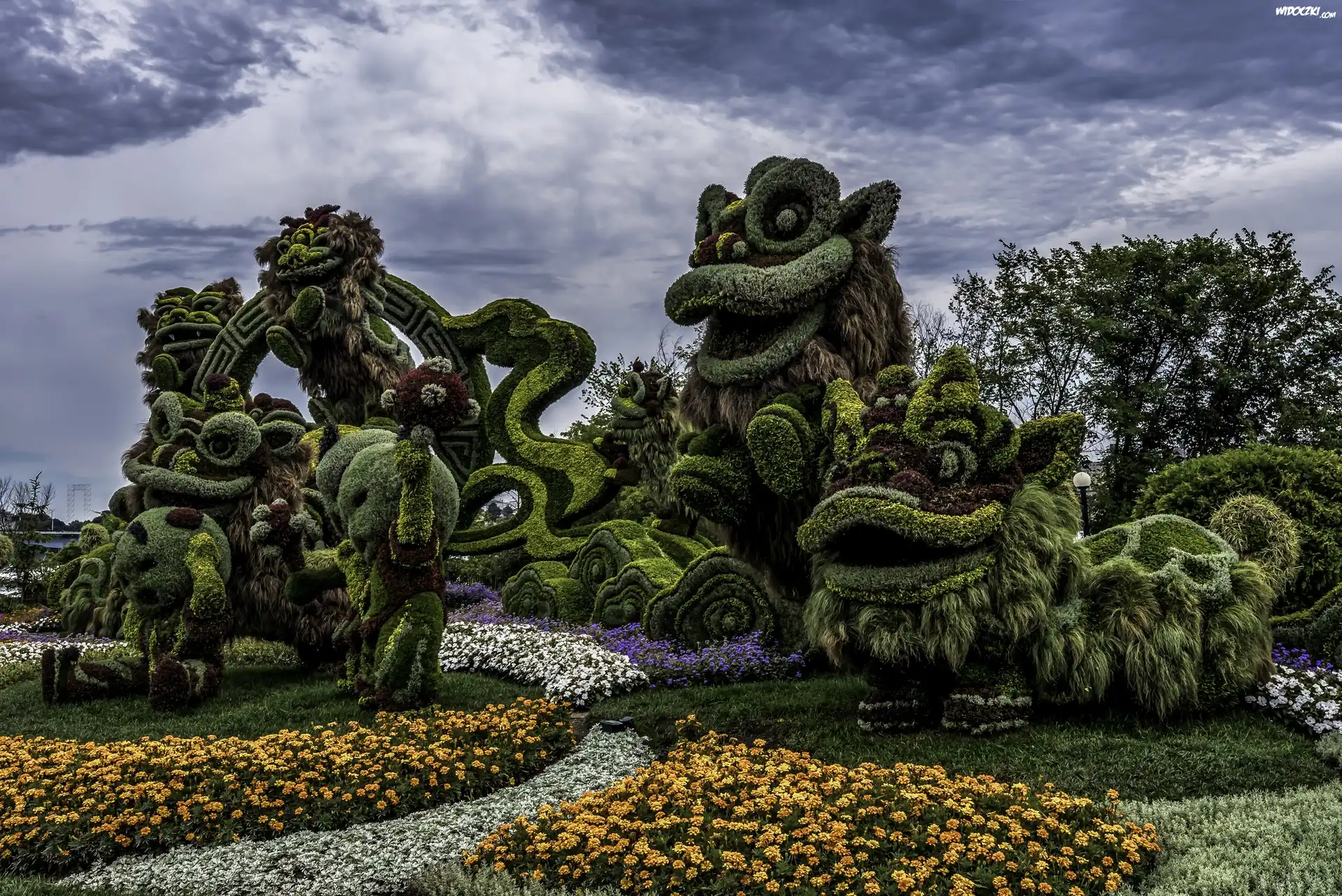 Zdjęcia, Park Jacques Cartier Park, Miasto Gatineau, Prowincja Quebec, Kanada, Rzeźby, Rośliny
