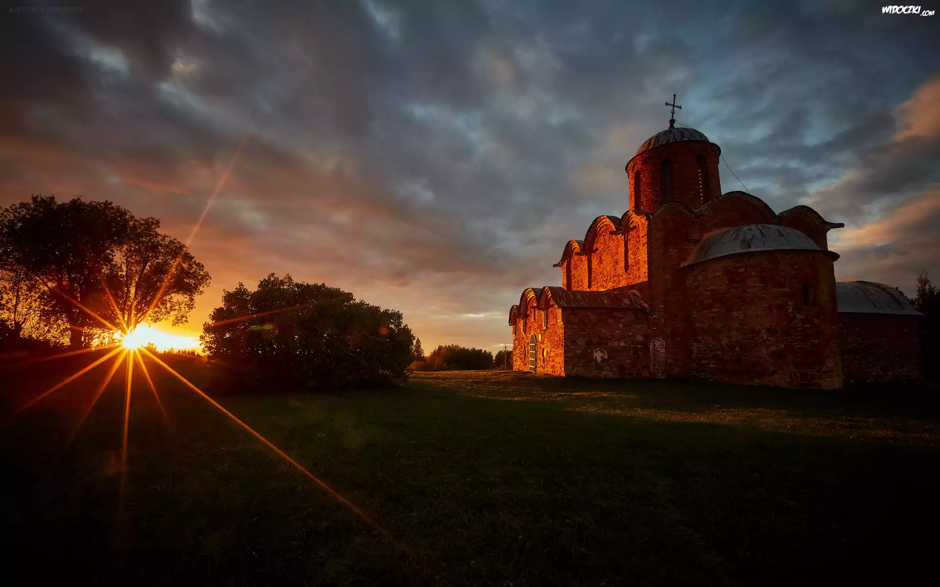 Zdjęcia, Cerkiew, Drzewa, Promienie słońca