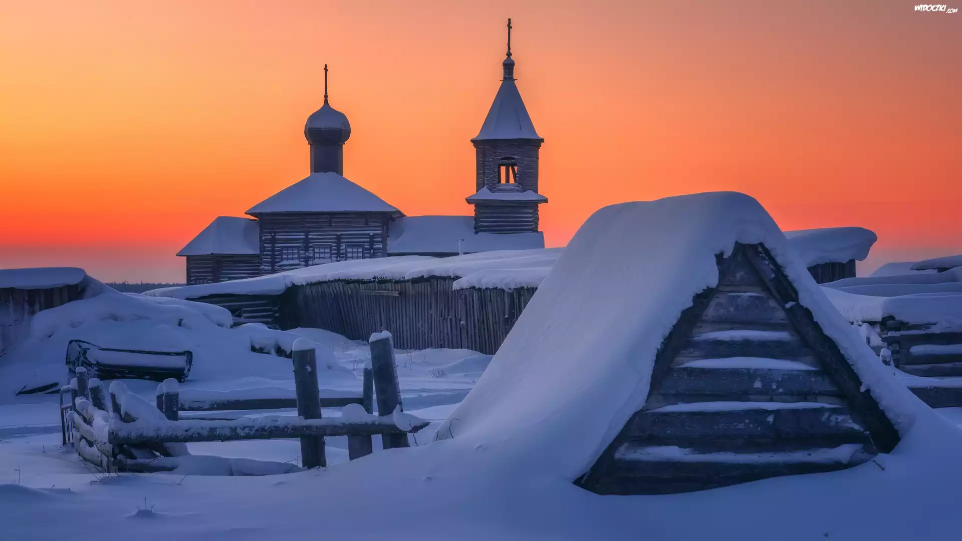 Zima, Cerkiew, Zabudowania, Ogrodzenie, Åšnieg