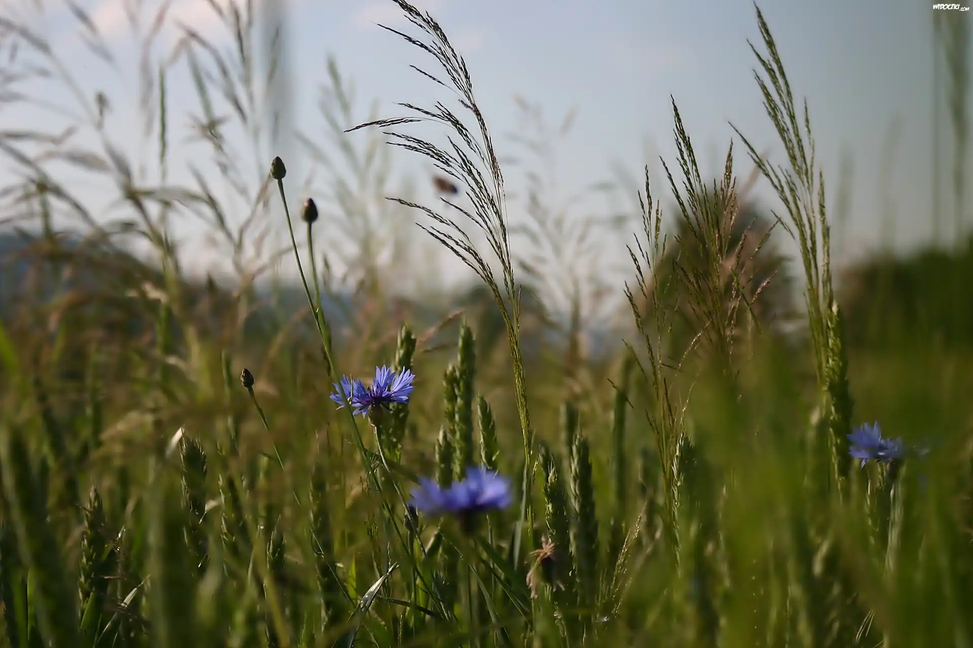 Zdjęcia, Chabry, Łąka, Trawa, Lato
