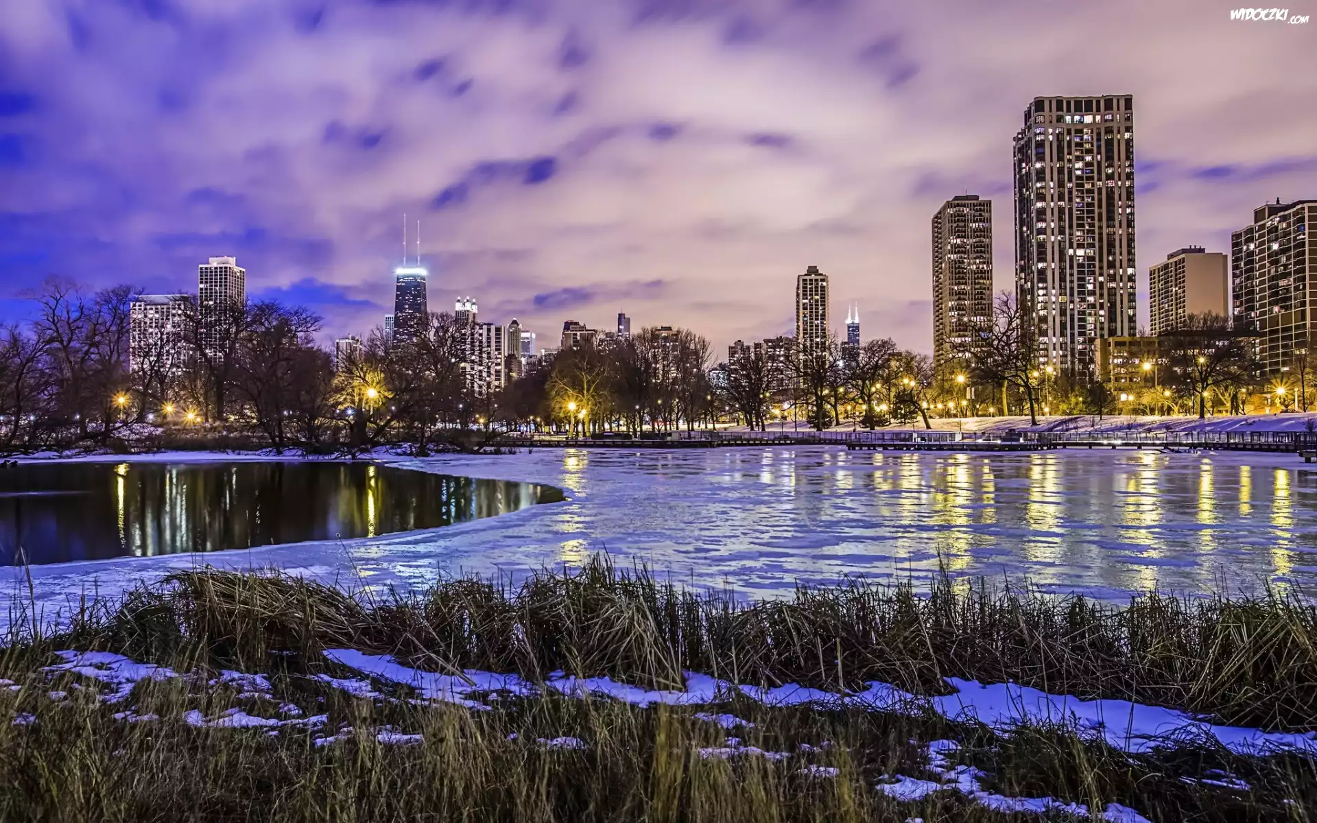 Zdj臋cia, Chicago, Drapacze, Chmur, Rzeka