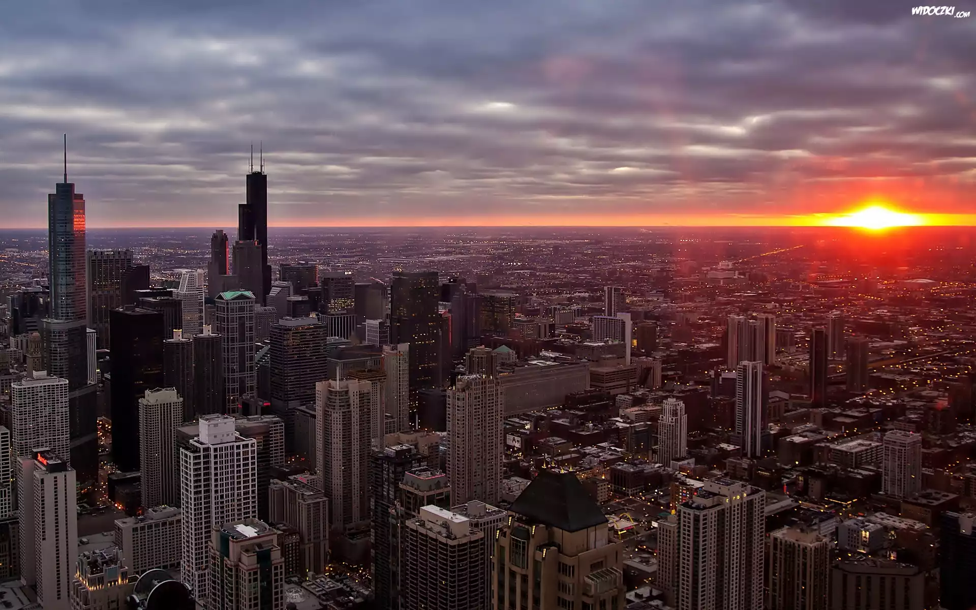 Zdjęcia, Chicago, Panorama, Miasta, Świt