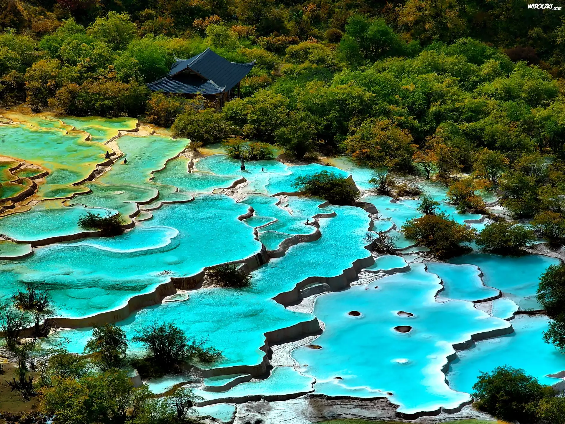 Zdjęcia, Chiny, Sadzawki, Huanglong, Kaskada