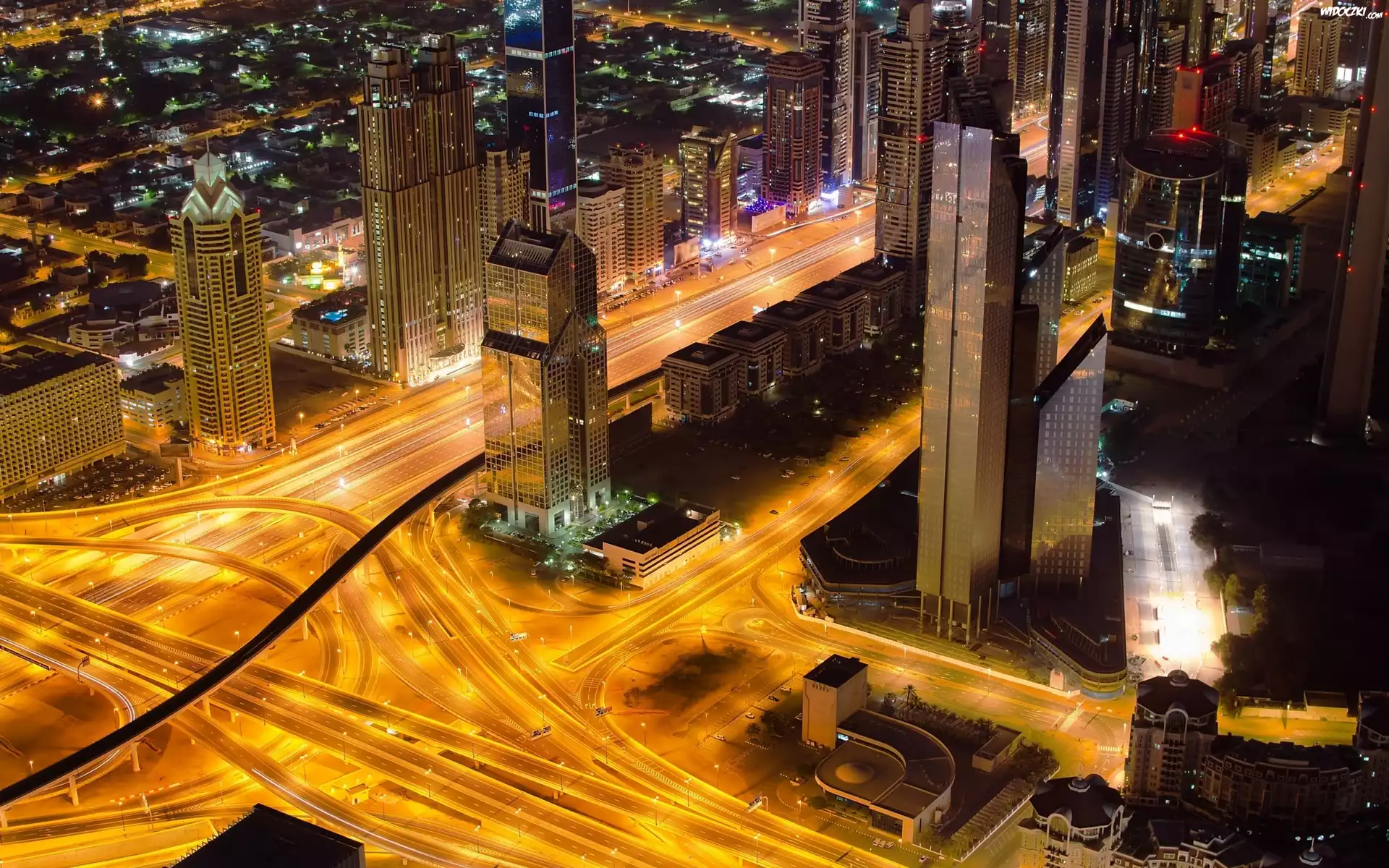 Drapacze, Chmur, Ulice, Panorama, Miasta, Noc, Dubaj