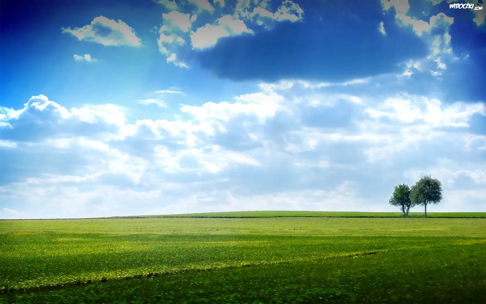 Łąka, Chmury, Drzewa