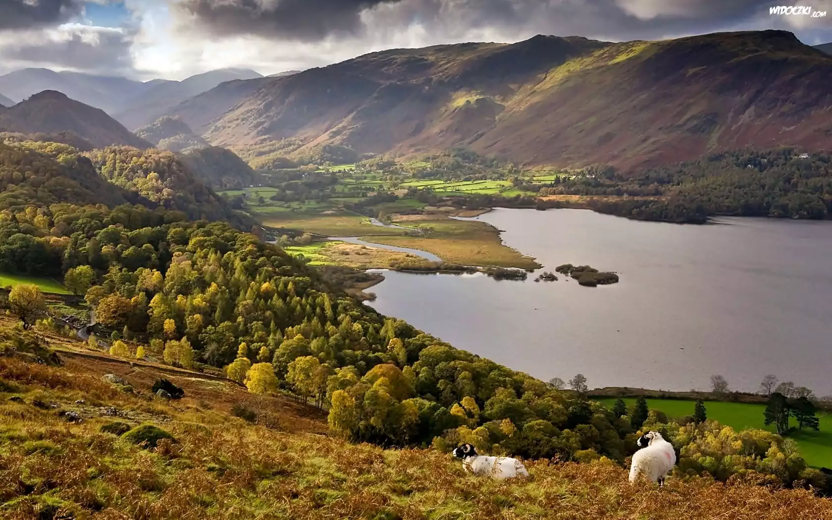 Zdjęcia, Chmury, Góry, Jezioro, Las, Łąka, Barany