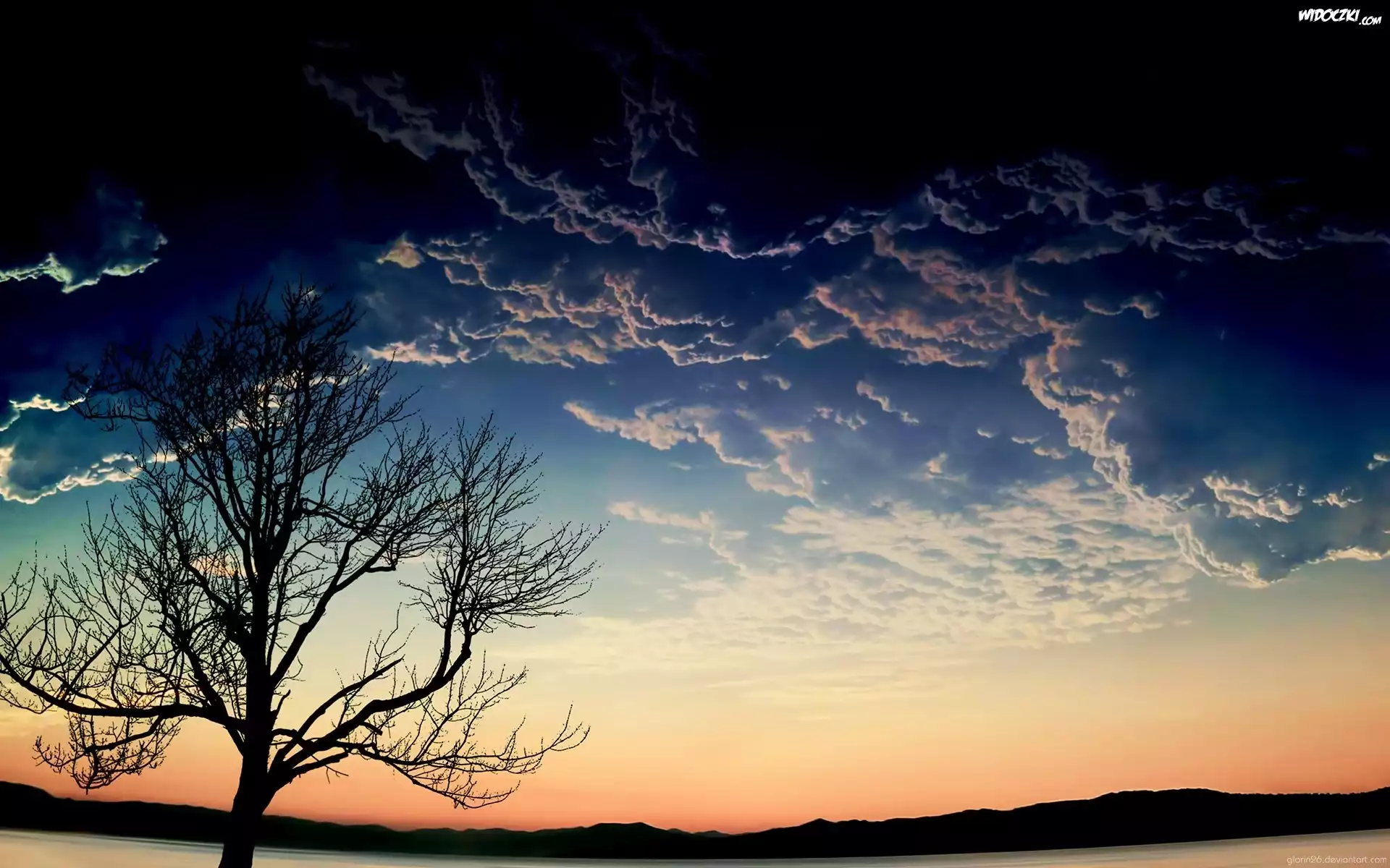 Zdjęcia, Burzowe, Chmury, Drzewo