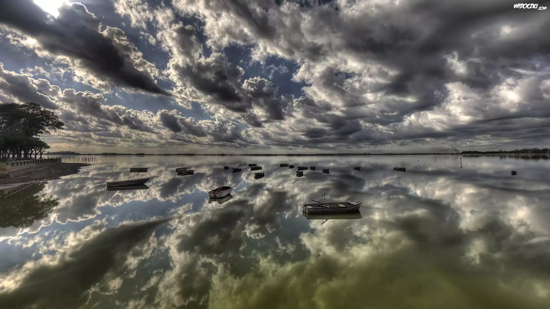 Zdjęcia, Ciemne, Chmury, Łódki