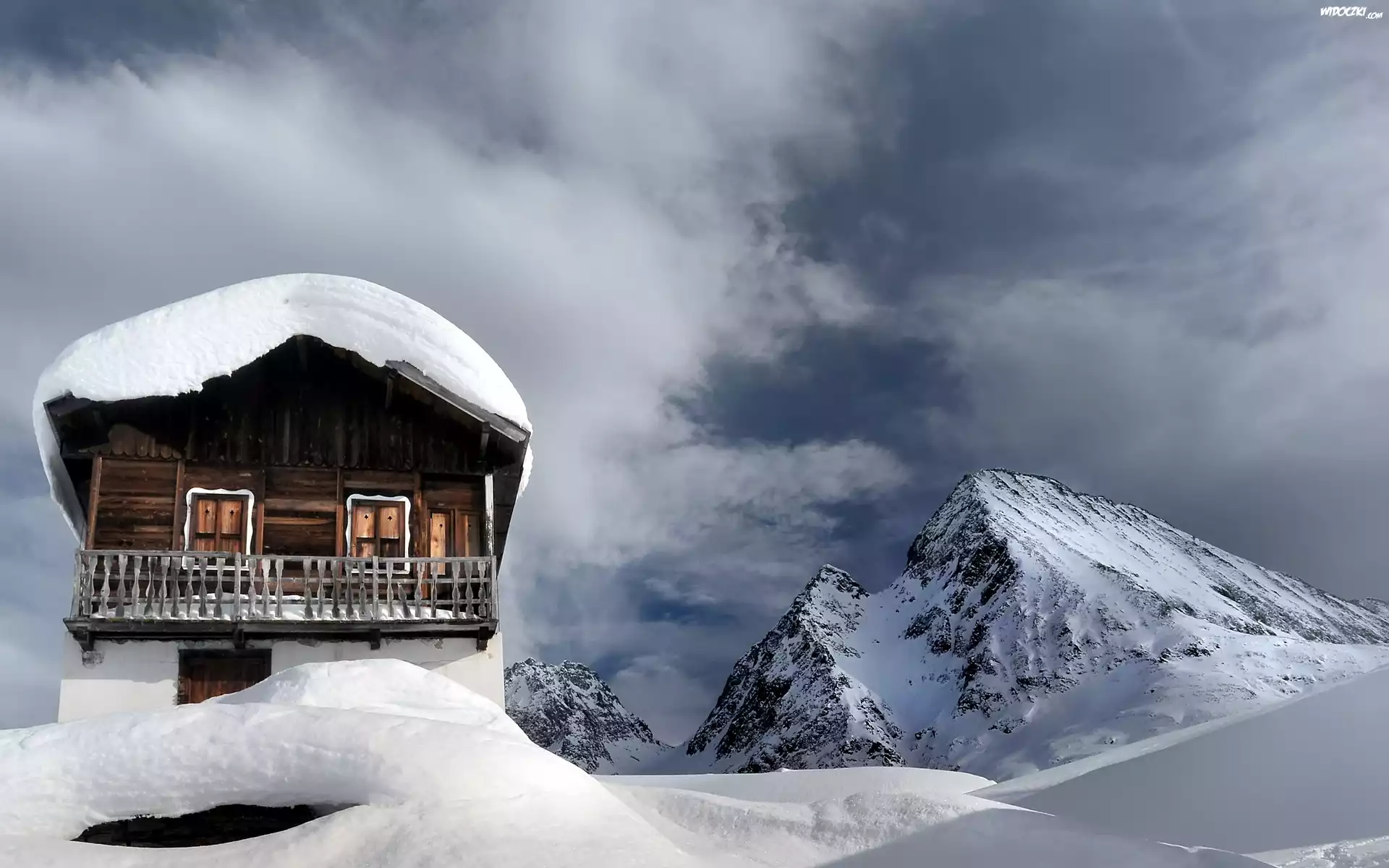 Zdjęcia, Chmury, Góry, Domek, Zima