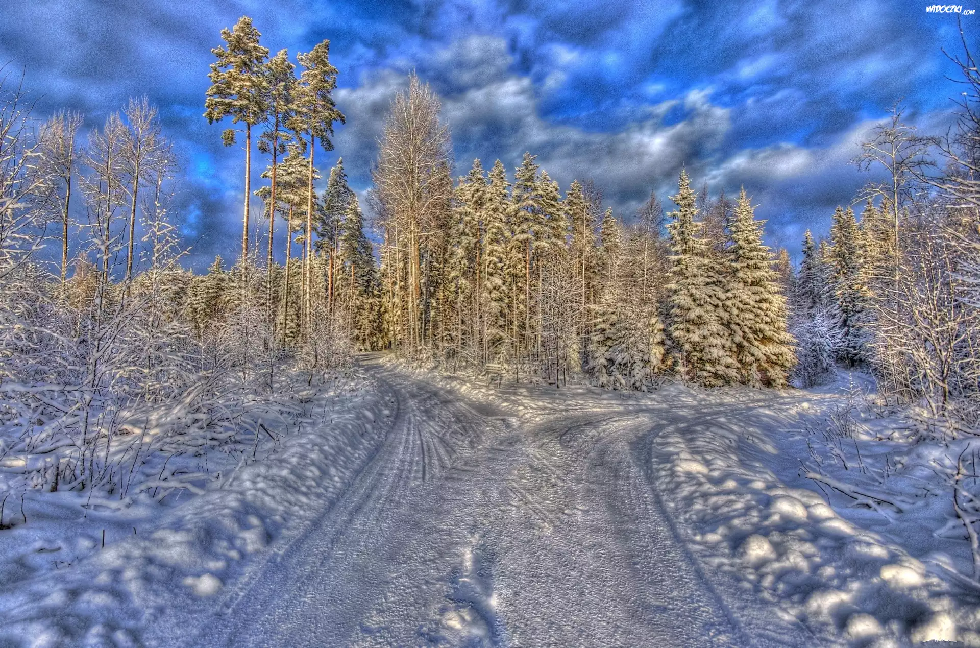 Zdjęcia, Chmury, Las, Droga, Zima