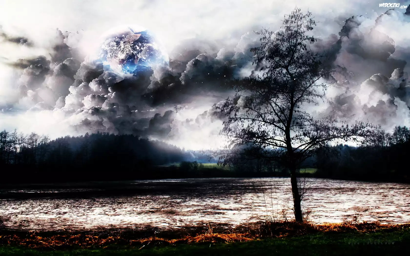 Zdjęcia, Drzewo, Chmury, Jezioro