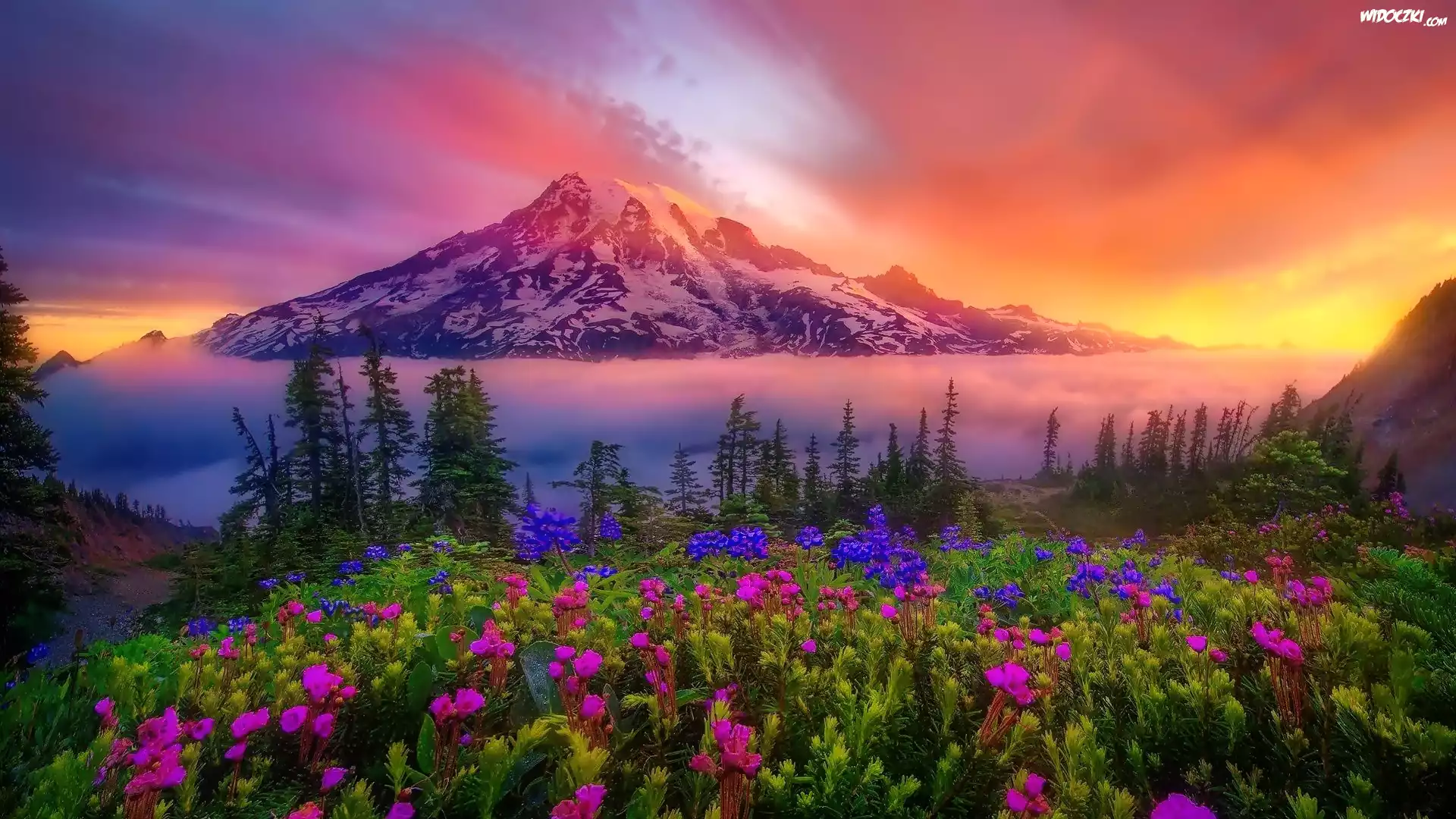 Góry, Chmury, Kwiaty