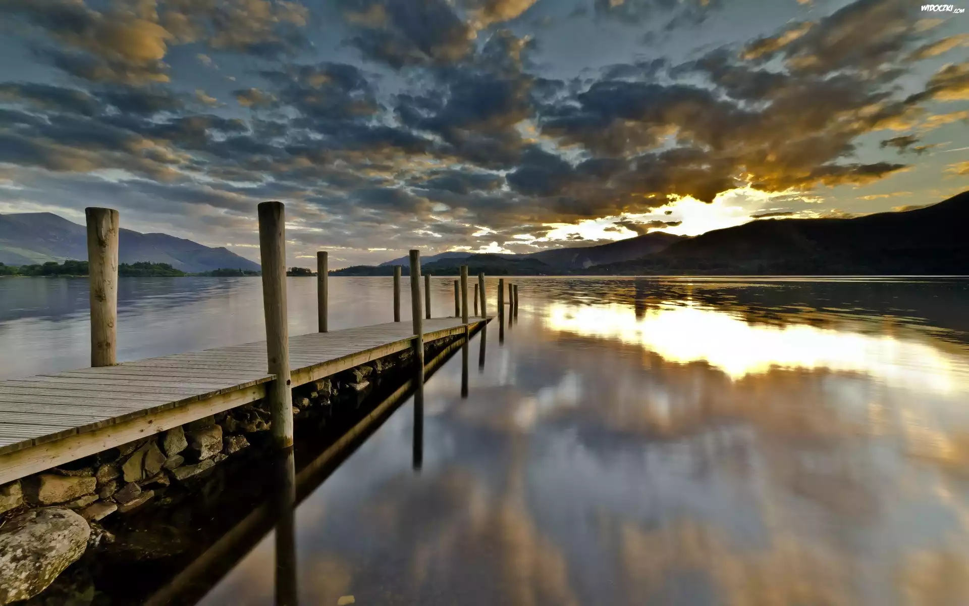Zdjęcia, Chmury, Jezioro, Pomost, Góry, Lasy