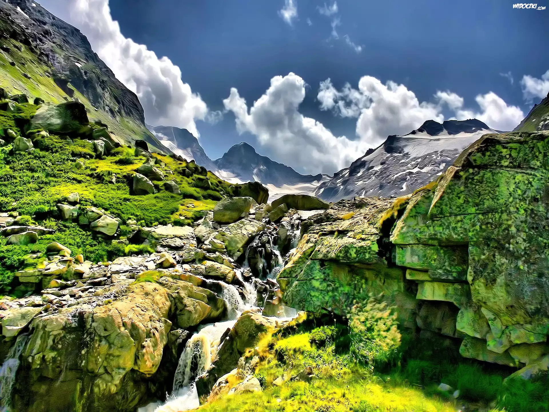 Zdjęcia, Góry, Chmury, Wodospad
