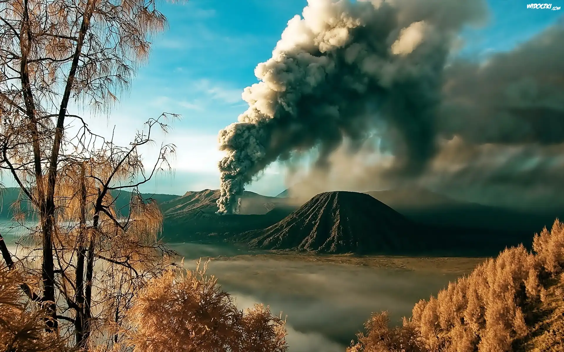 Łąka, Kwiaty, Wulkan Wulkan Wulkany, Dymy, Niebo Skały, Lawa Góry, Wulkany Wulkan, Miasto Ocean, Wulkan Góra, Fuji, Japonia Krajobraz, Wulkan, Etna Rosja, Kamczatka, Wulkan, Kronotsky Wulkan, Awaczańska, Sopka, Kamczatka Wulkan Wulkan, Wybuch, Dym Wulkan, Wybuch