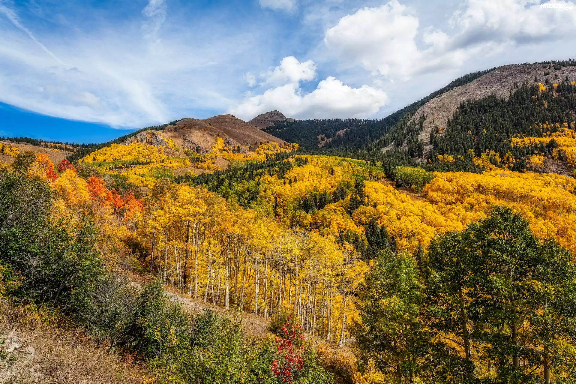 Zdjęcia, Góry San Juan, Las, Jesień, Chmury, Hrabstwo San Juan, Kolorado, Stany Zjednoczone