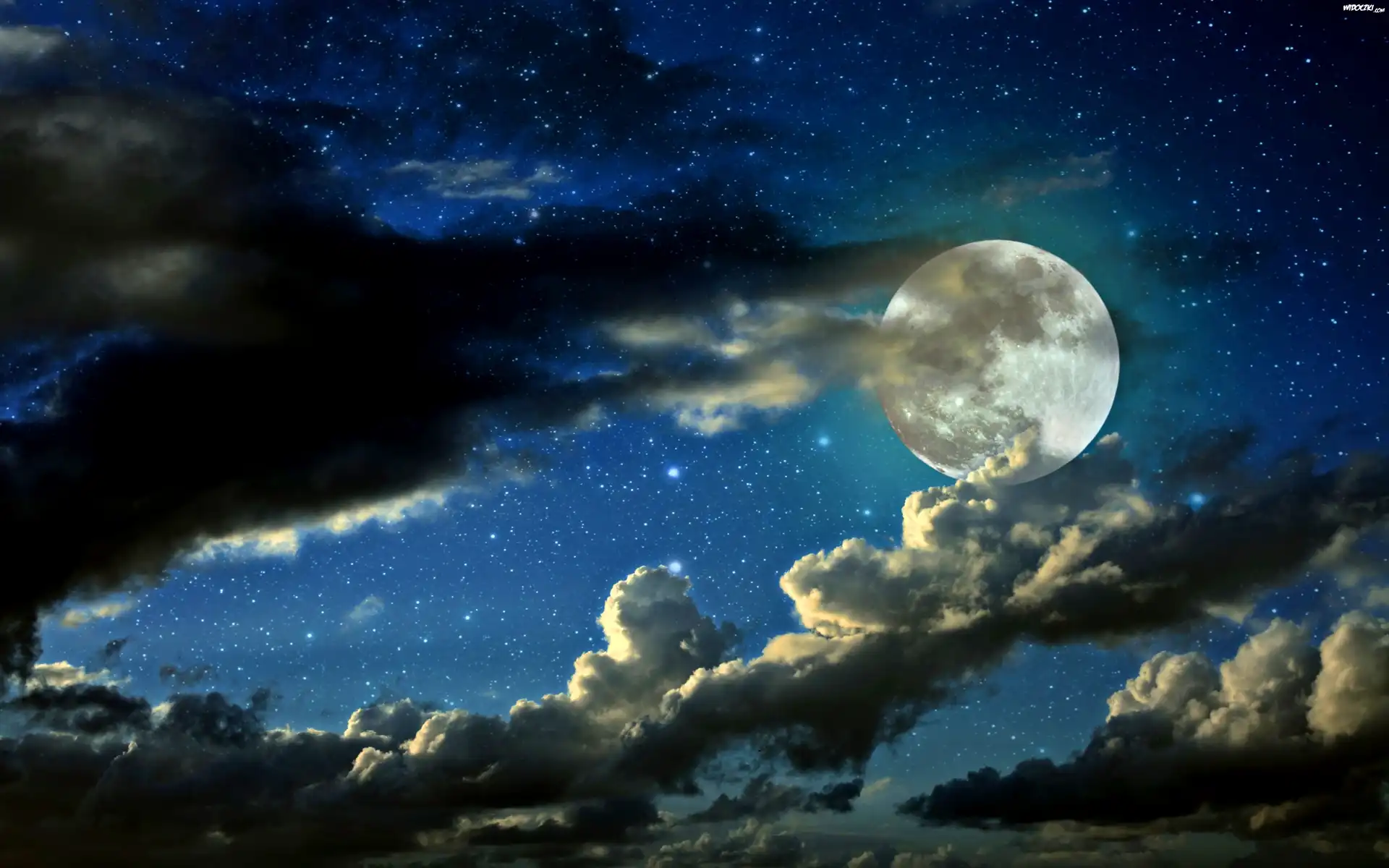 Chmury, Noc, Gwiazdy, Księżyc