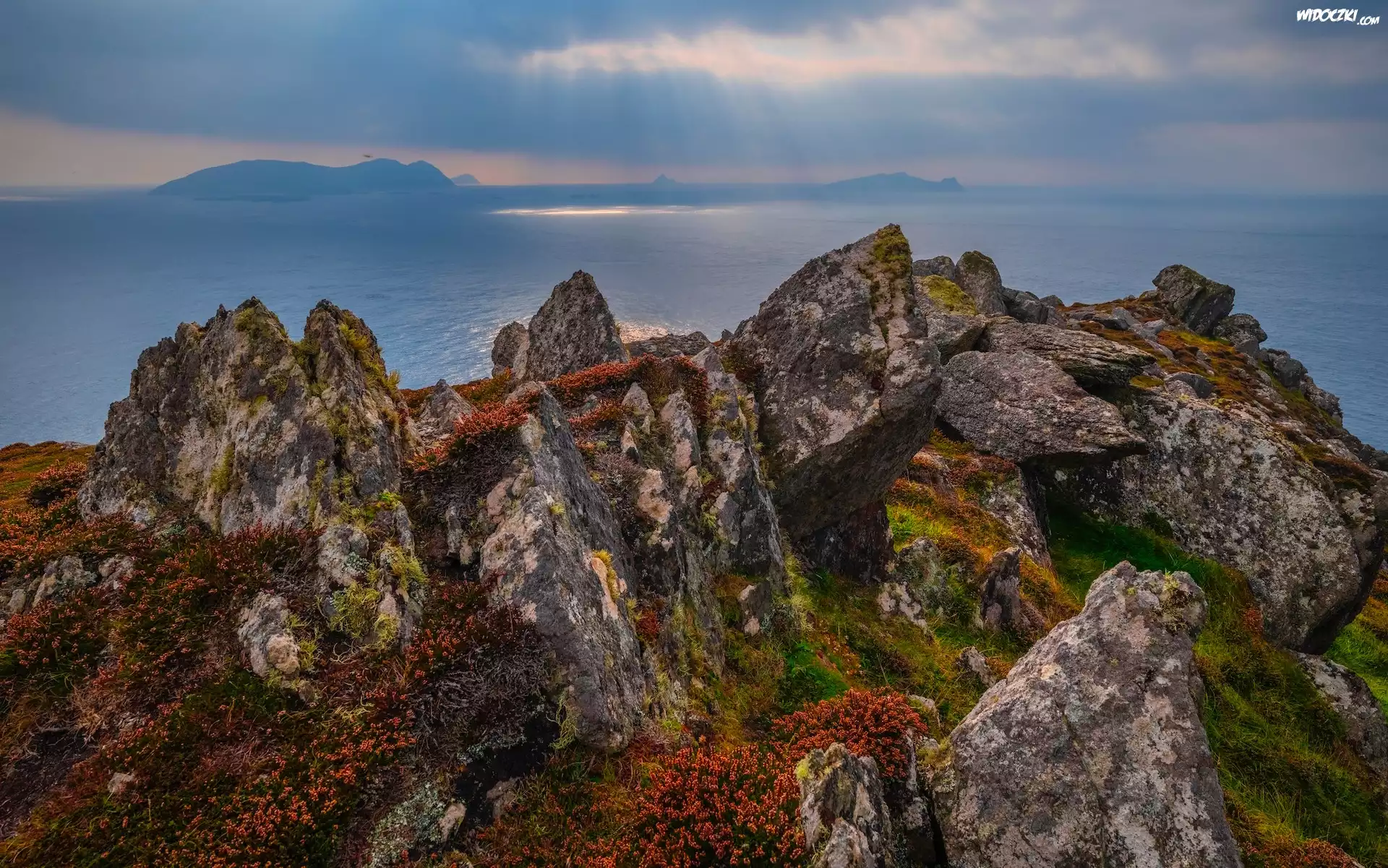 Zdjęcia, Irlandia, Morze, Skały, Chmury
