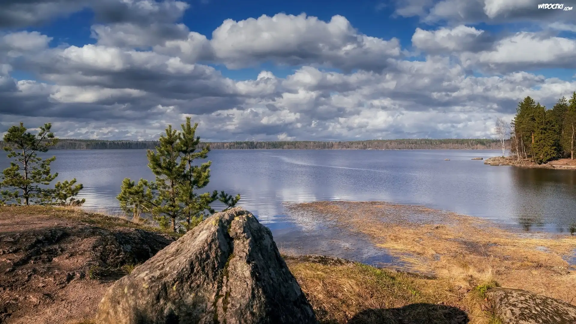 Zdjęcia, Jezioro, Lato, Drzewa, Chmury