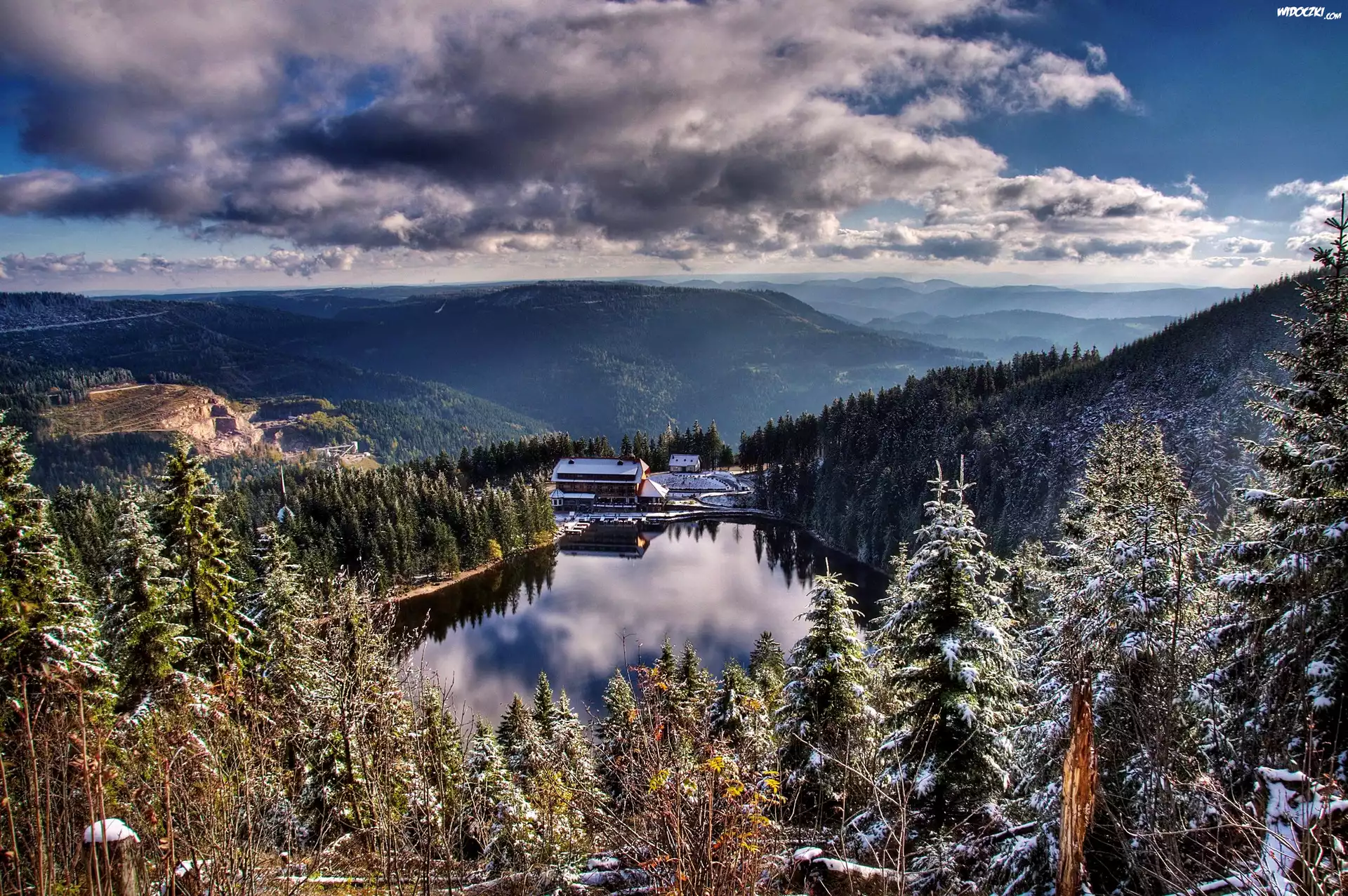 Zdjęcia, Chmury, Góry, Jezioro, Lasy