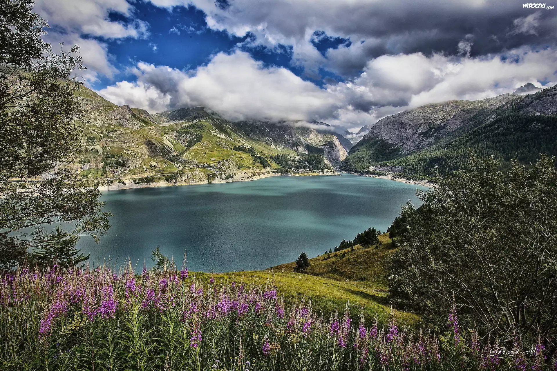 Zdjęcia, Chmury, Góry, Jezioro, Roślinność