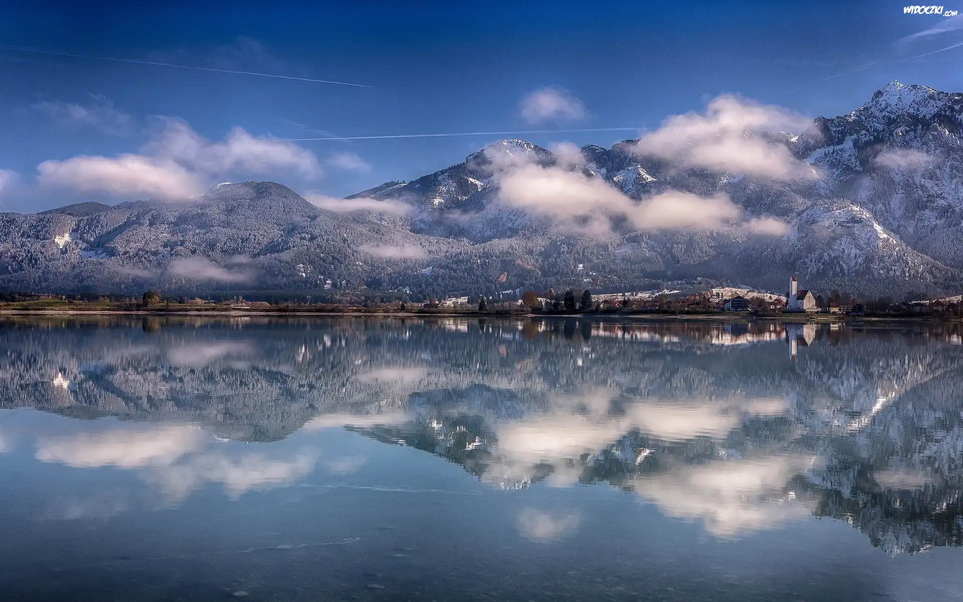 Zdjęcia, Chmury, Góry, Las, Jezioro, Zima