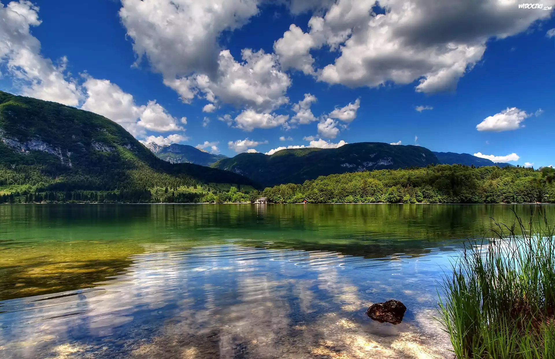 Zdjęcia, Chmury, Góry, Lasy, Jezioro, Bohinj