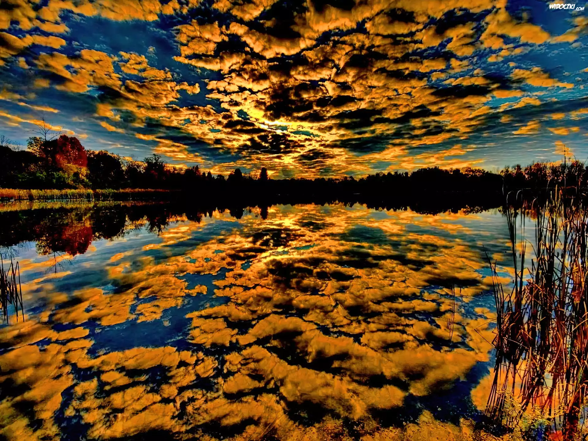 Zdjęcia, Chmury, Niebo, Jezioro, Odbicie
