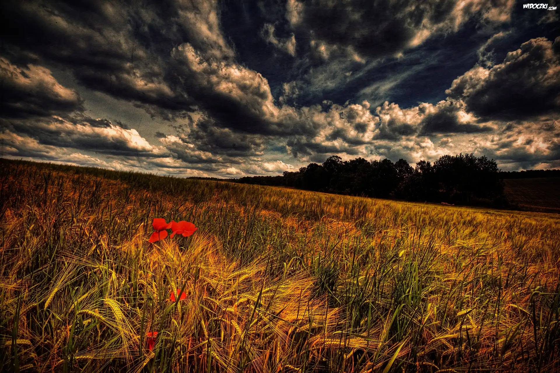 Zdjęcia, Chmury, Trawy, Kłosy, Zbóż