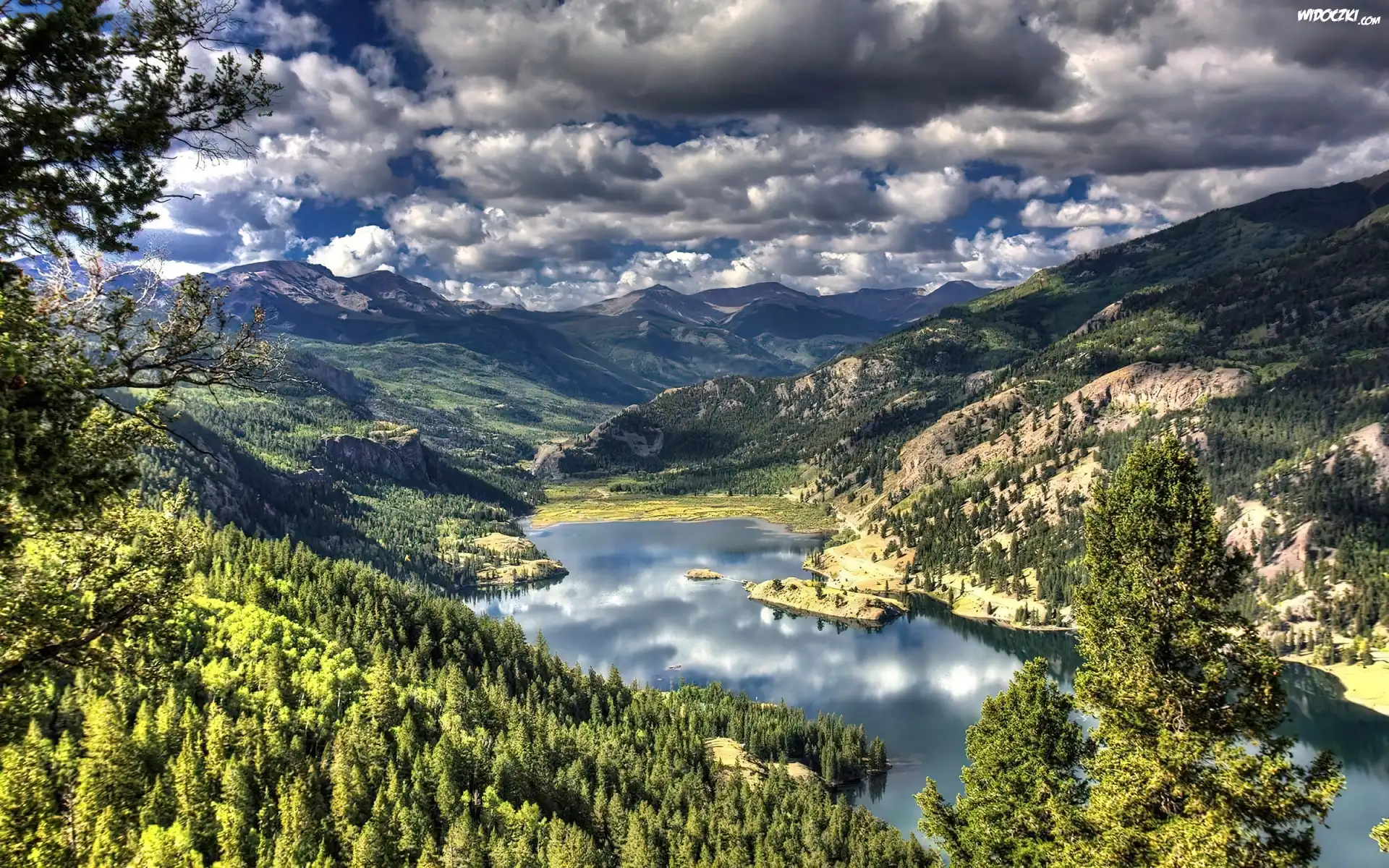 Zdjęcia, Chmury, Góry, Las, Jezioro