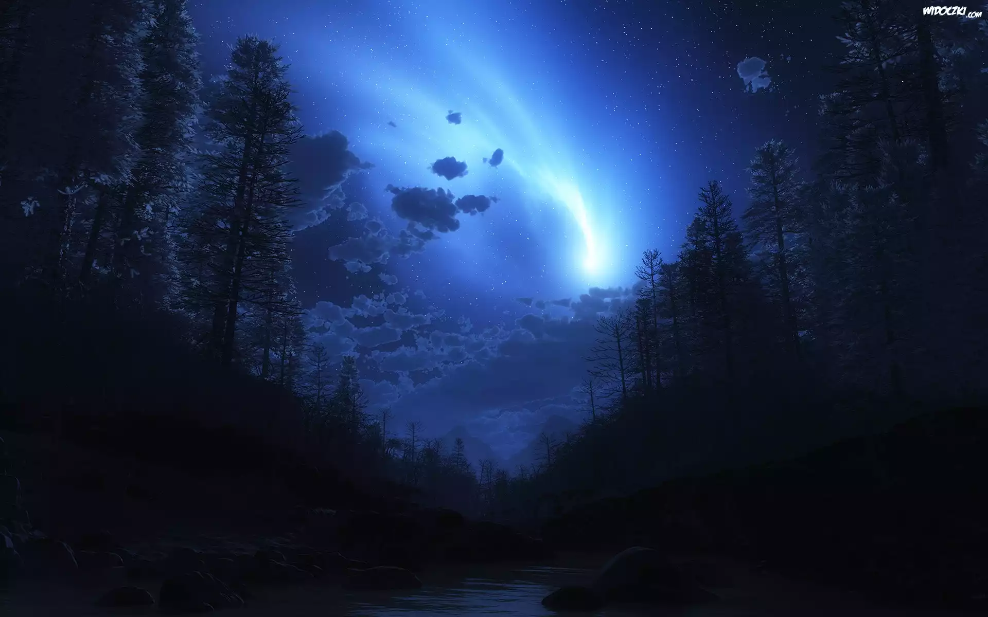 Zdjęcia, Las, Chmury, Noc
