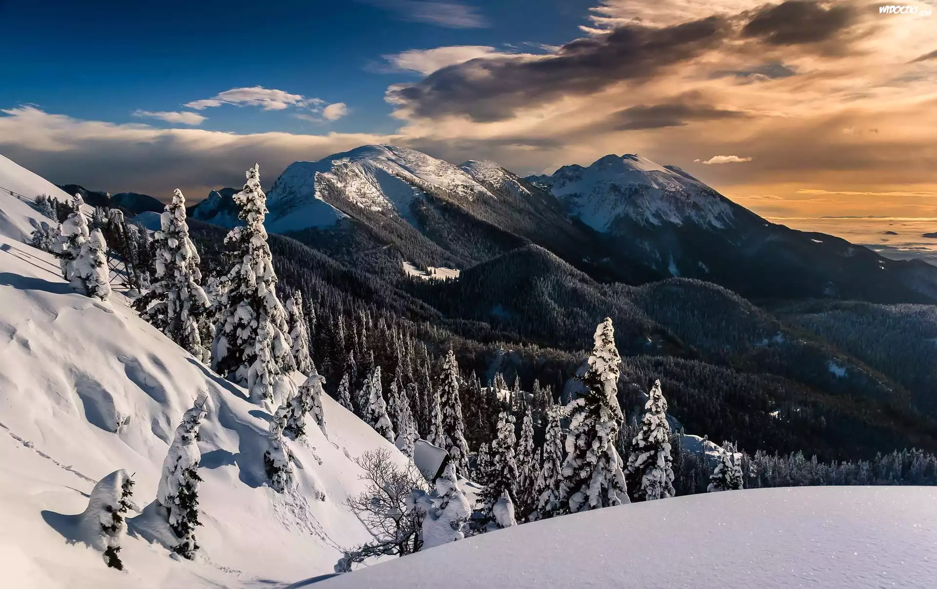 Zdjęcia, Chmury, Góry, Lasy, Zima