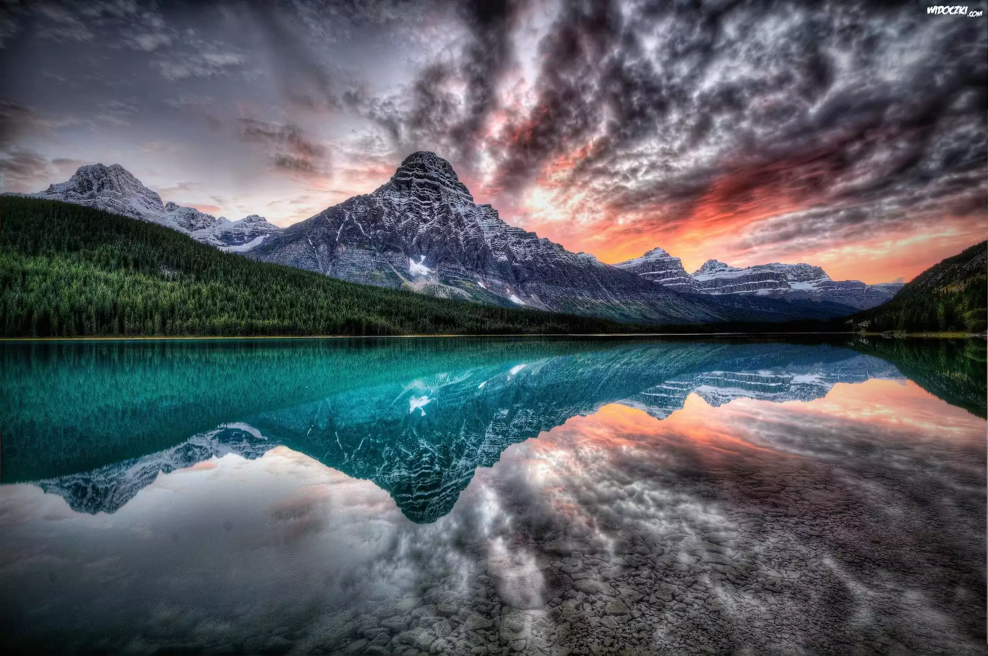 Chmury, Góry, Jezioro, Lasy, Odbicie