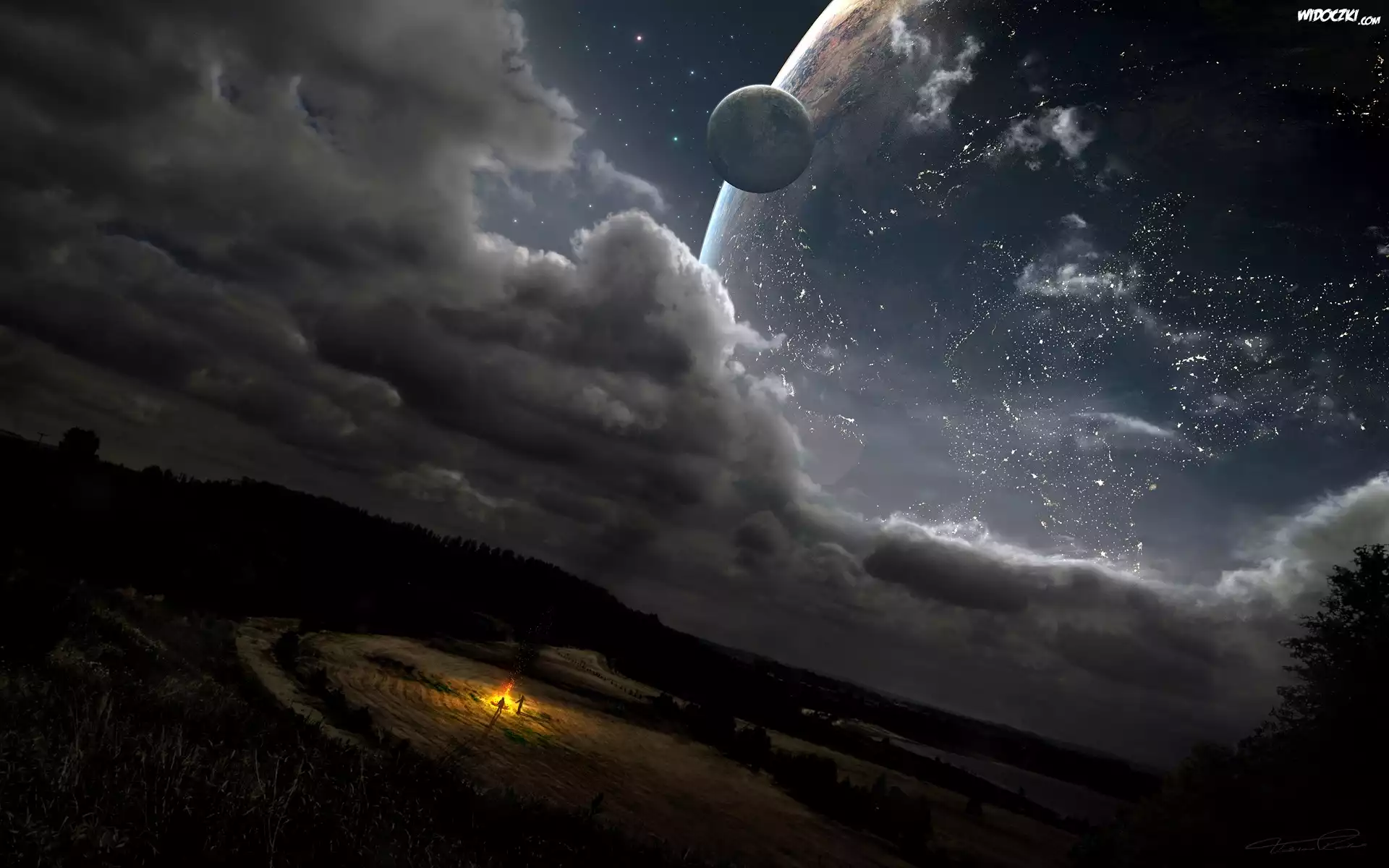 Chmury, Planety, Ludzie, Ognisko