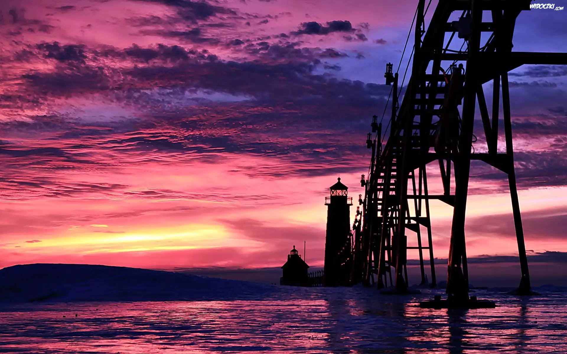 Morze, Chmury, Przebijające, Światło, Latarnie, Morskie, Most