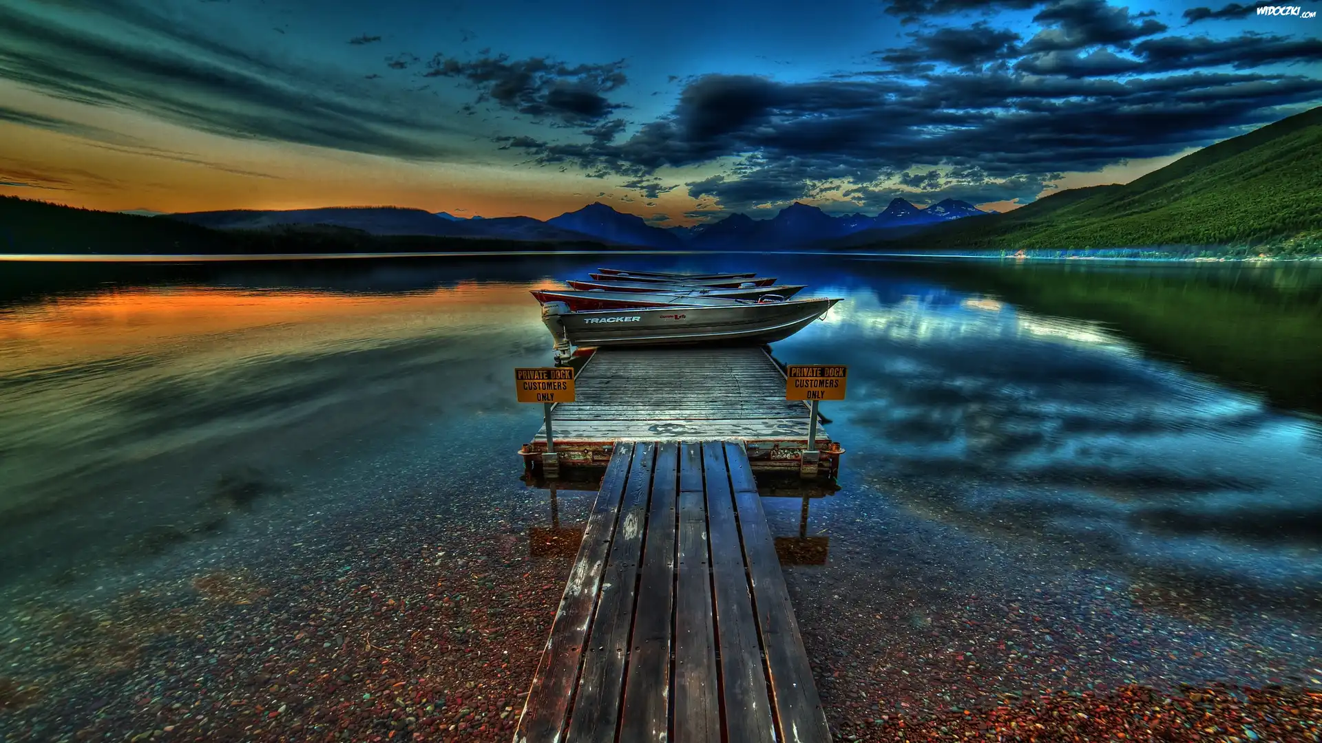 Zdjęcia, Chmury, Jezioro, Mostek, Łódki