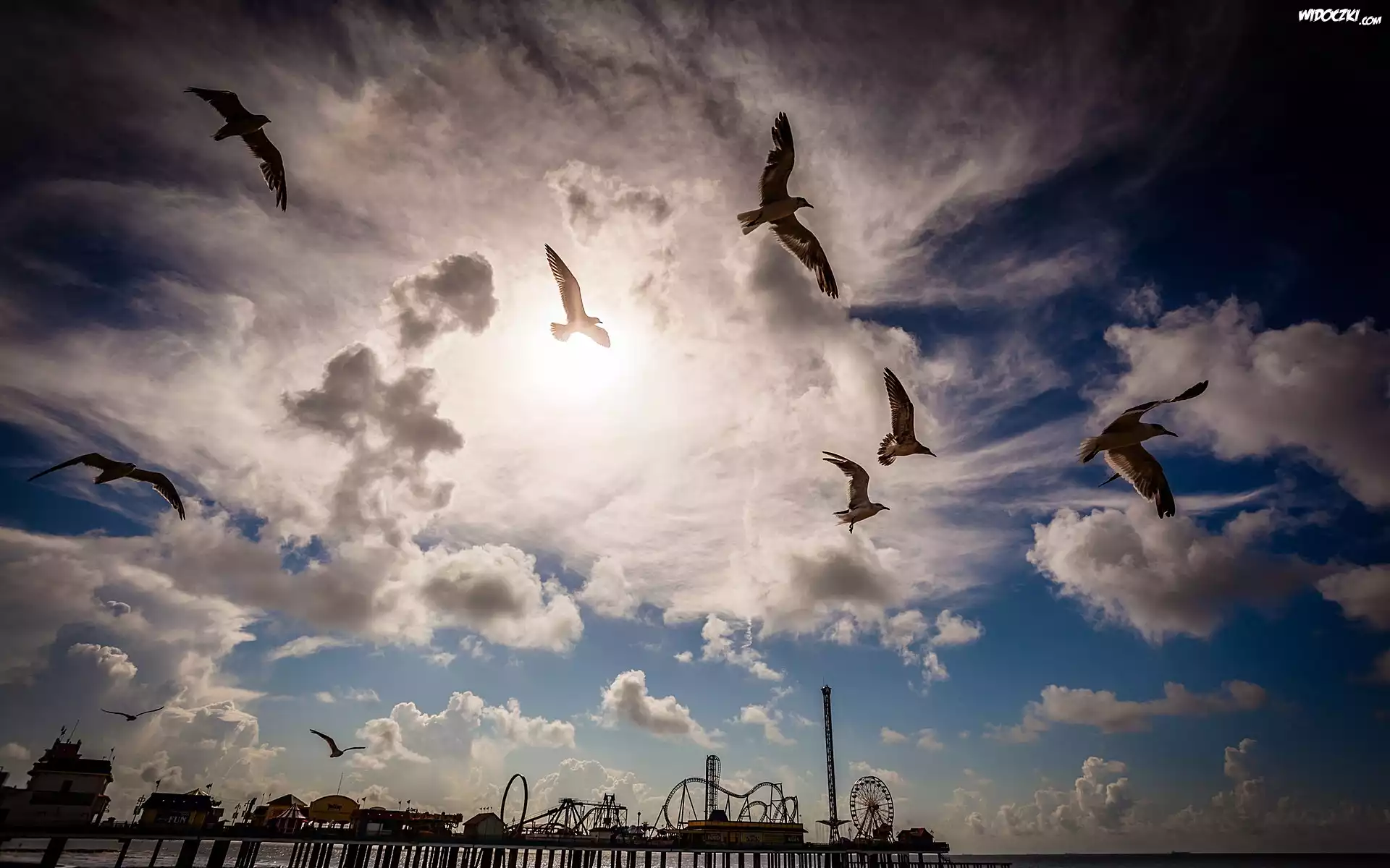Zdj臋cia, Niebo, Chmury, Ptaki