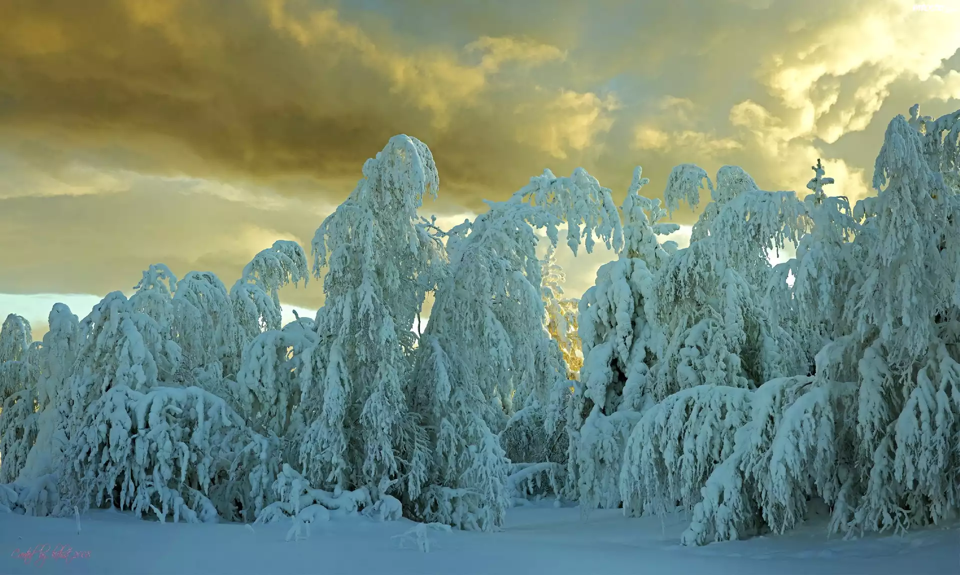 Zdjęcia, Chmury, Drzewa, Śnieg, Zima