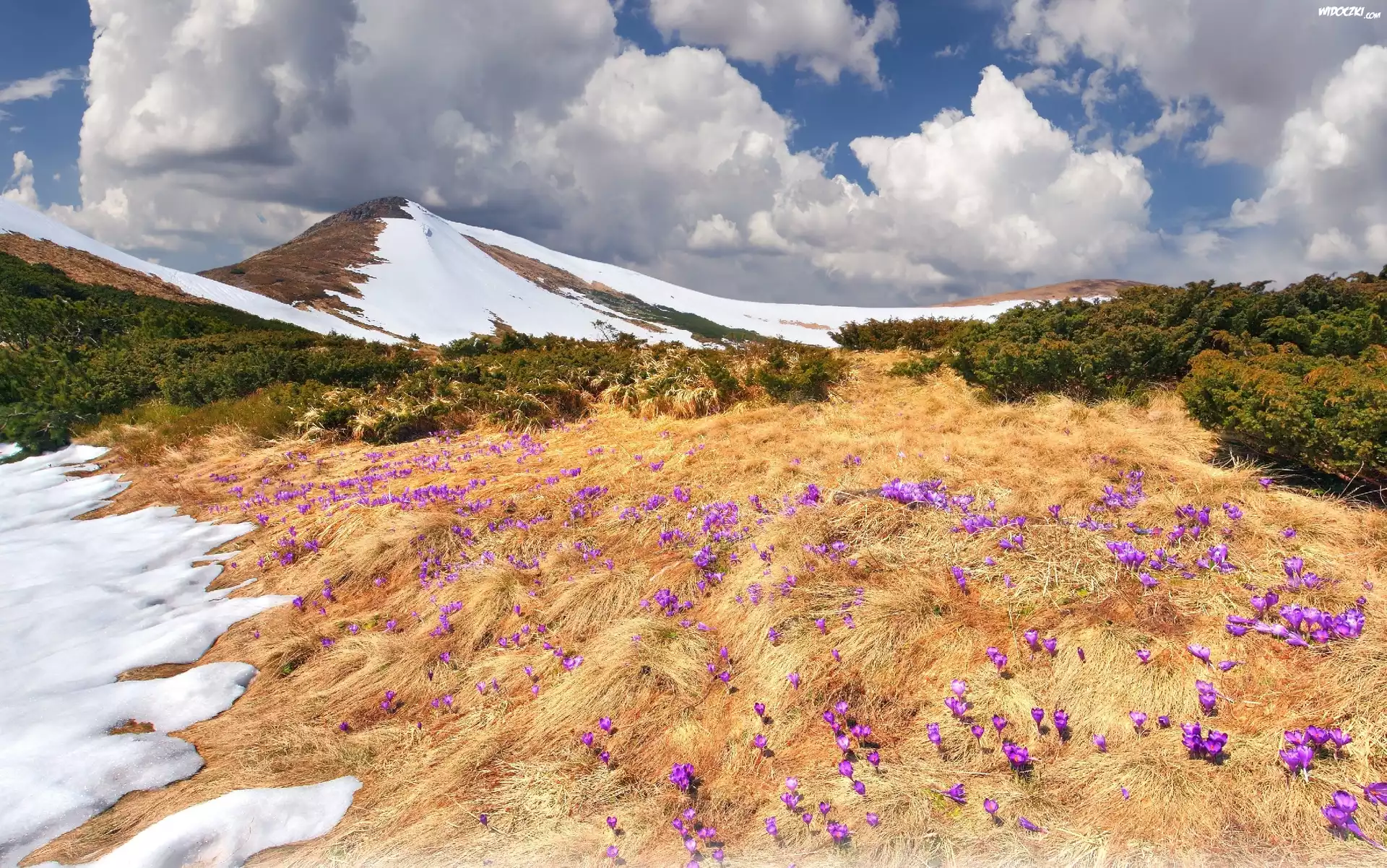 Zdjęcia, Chmury, Góry, Śnieg, Kwiatki