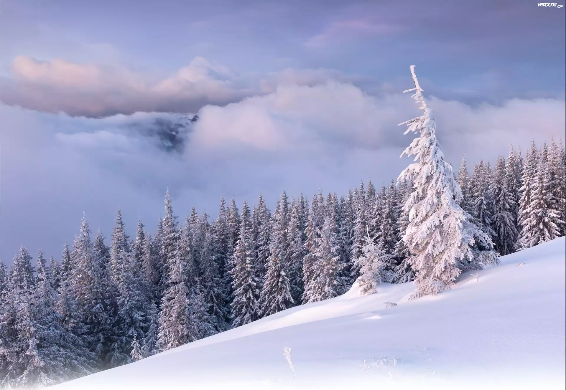 Zdjęcia, Chmury, Las, Śnieg, Zima